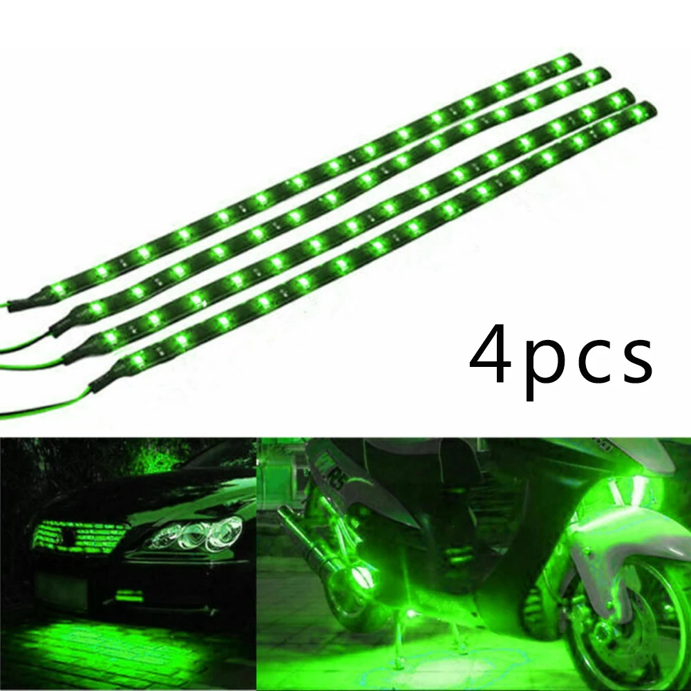 4 шт., гибкая светодиодная лента для мотоцикла, 30 см, 15SMD, 12 В постоянного тока