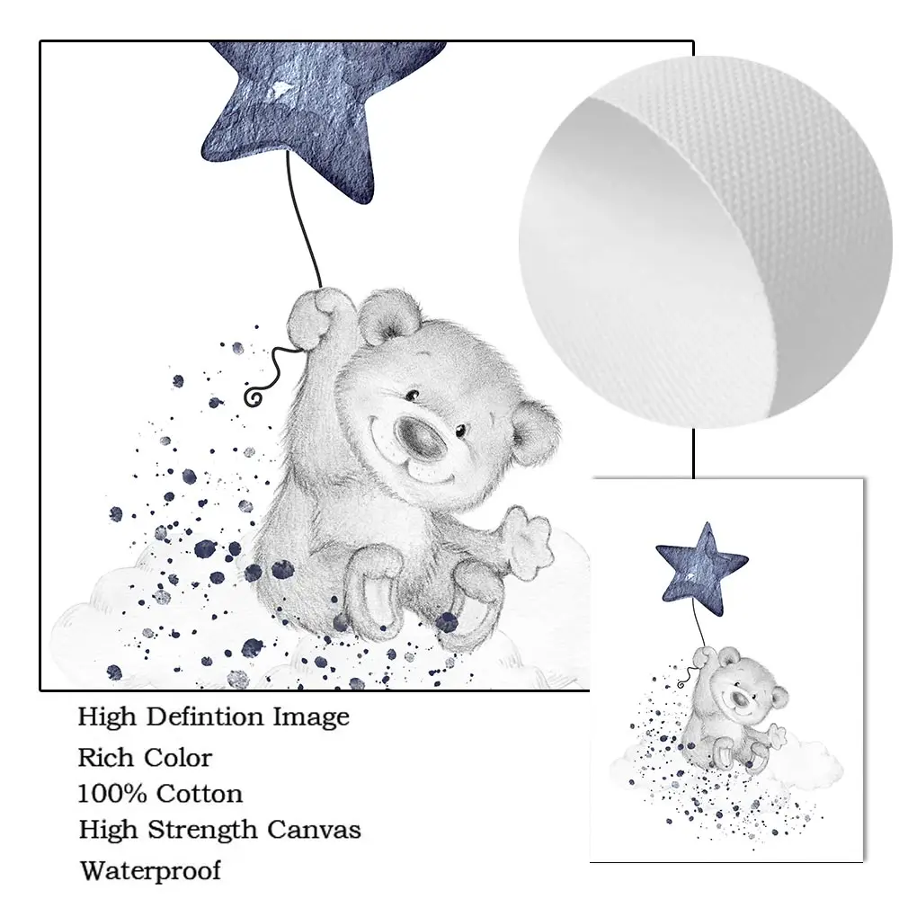 Персонализированный настенный плакат с именем на заказ, медведь, животное, Художественная печать, луна, звезда, холст, живопись, Скандинавская картина, декор для детской комнаты, мальчика