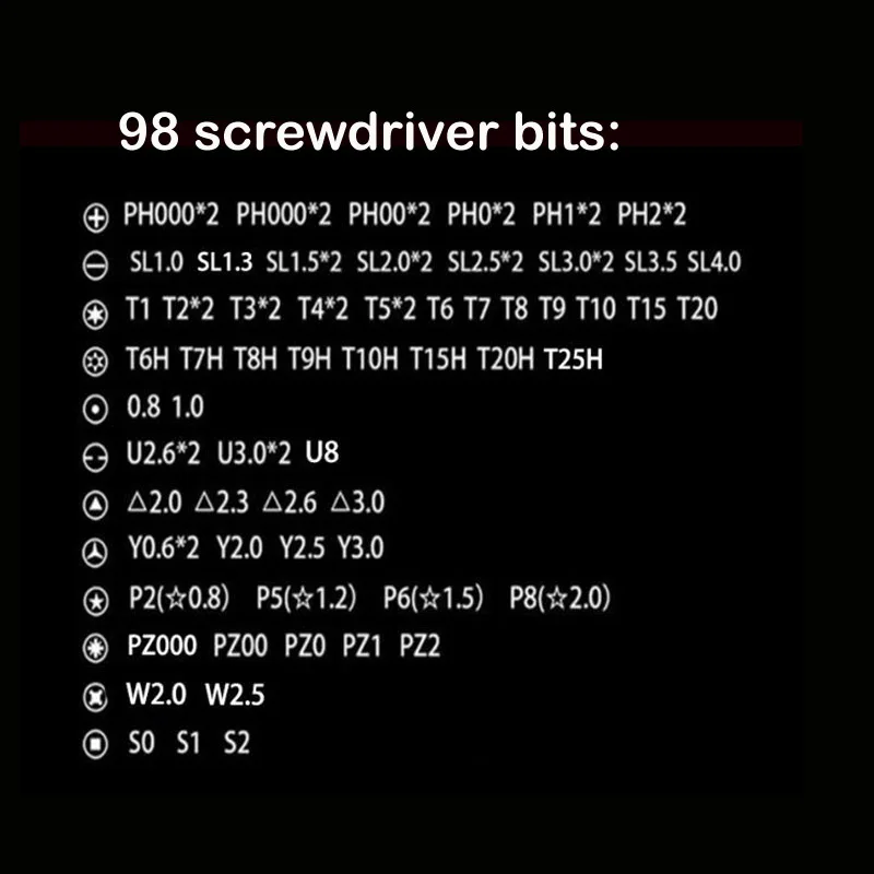 【Множественные комбинации 】 набор крошечных отверток 32 в 1 включает в себя: винты Phillips, винты с прорезями, винты Torx, винты Y, треугольные винты, шестигранные винты, винты U и винты Penta. Эти сверла могут удовлетворить все потребности в ремонте инструмента для небольшого размера.