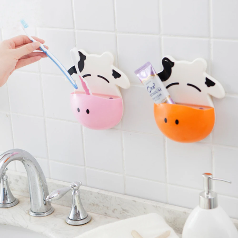 Мультяшная корова настенная подставка для зубных щеток держатель зубной пасты Бесплатная Пробивка держатель зуба для детей аксессуары для ванной комнаты инструменты
