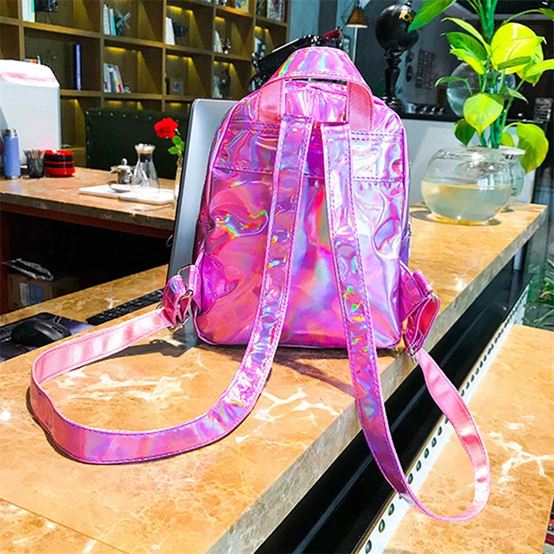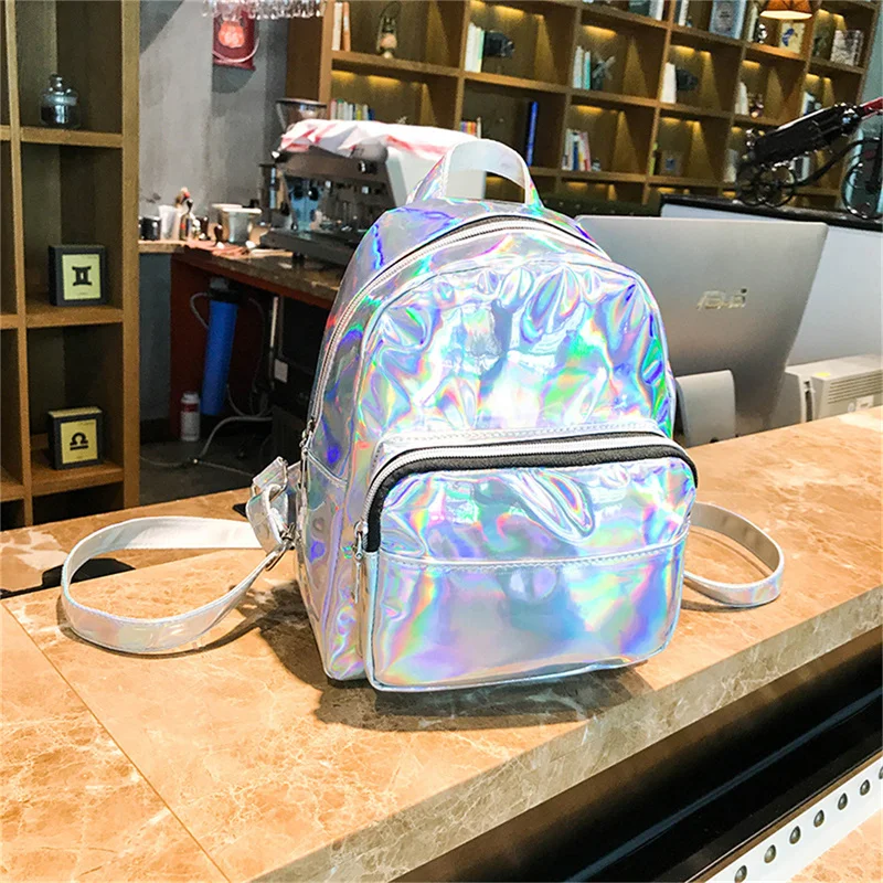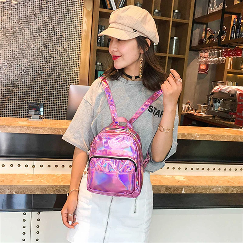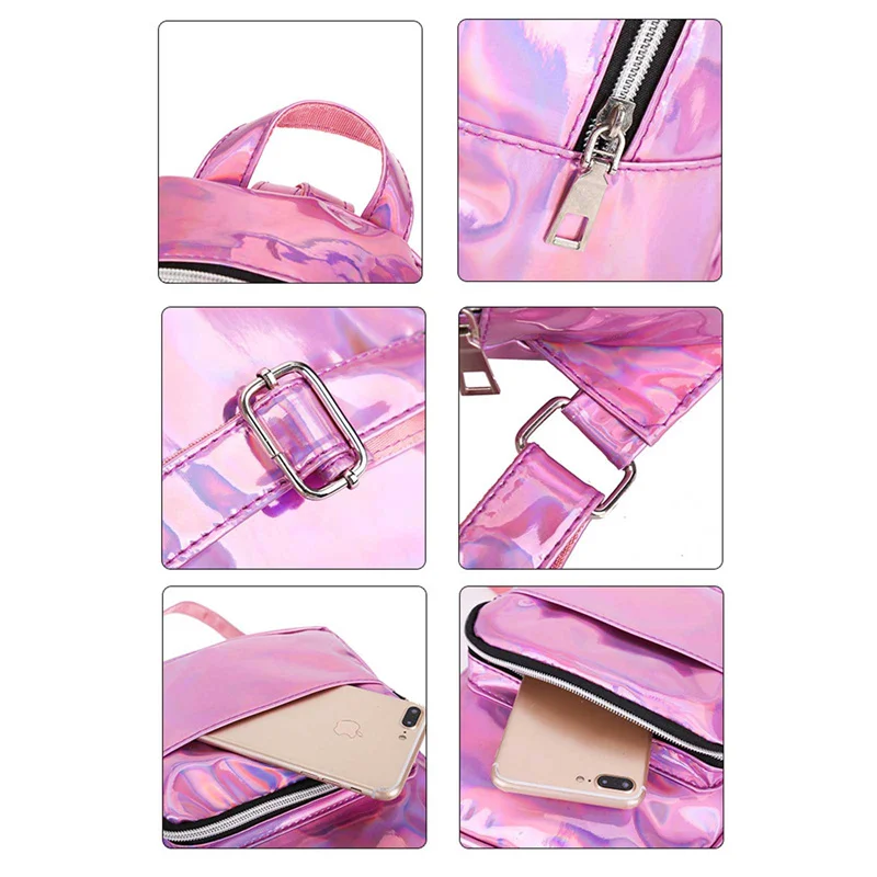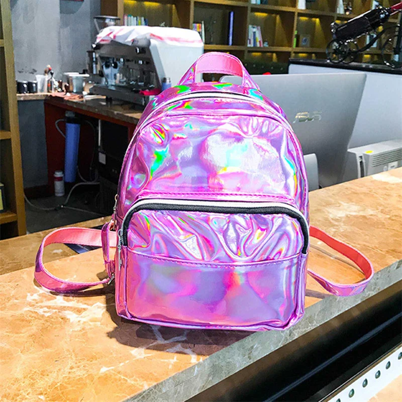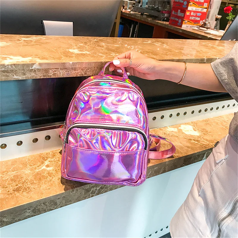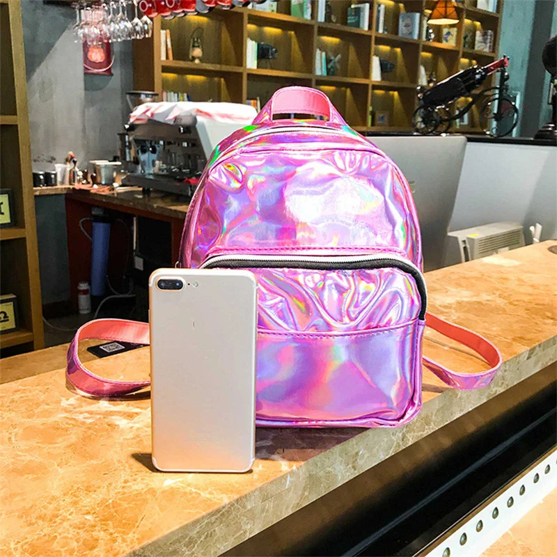 Серебристо-розовый Модный Лазерный рюкзак, женская сумка, голографический маленький размер