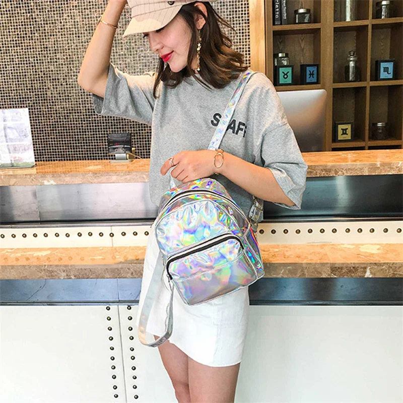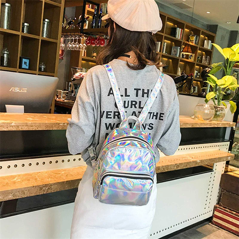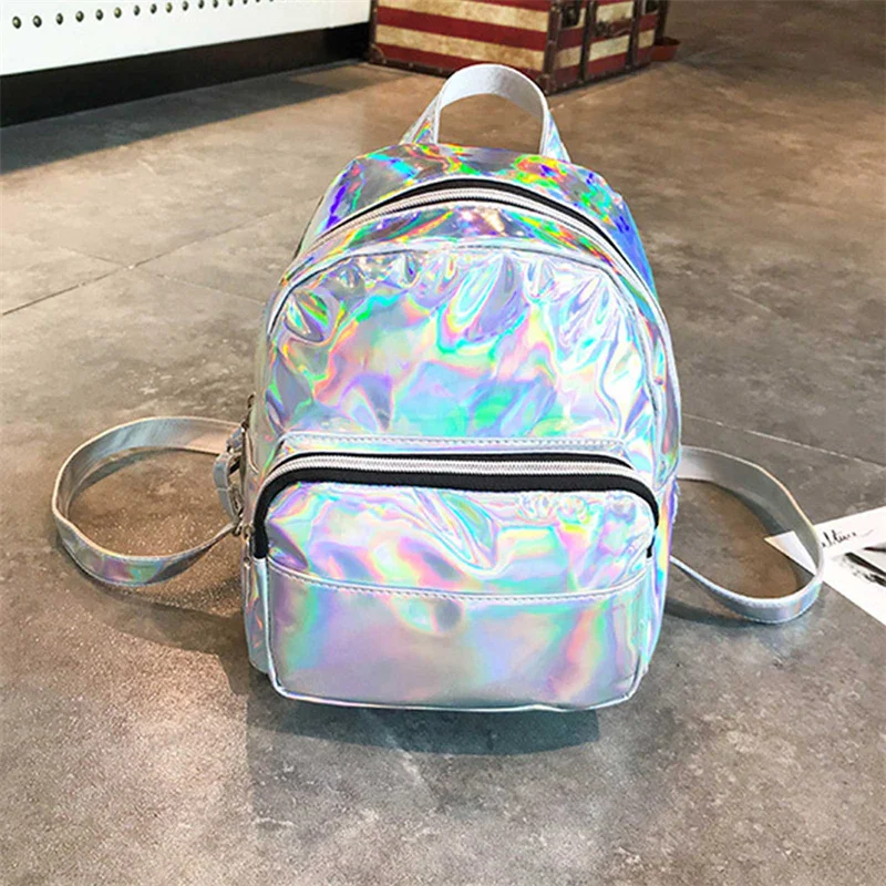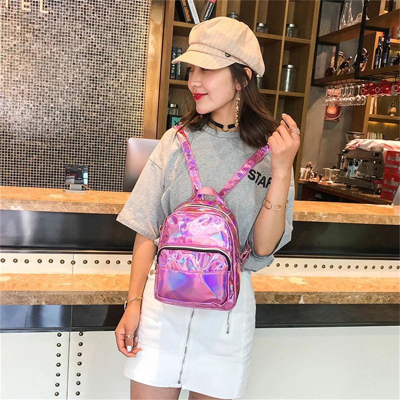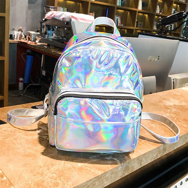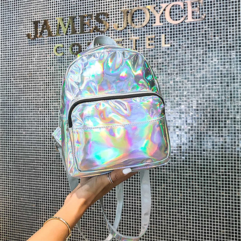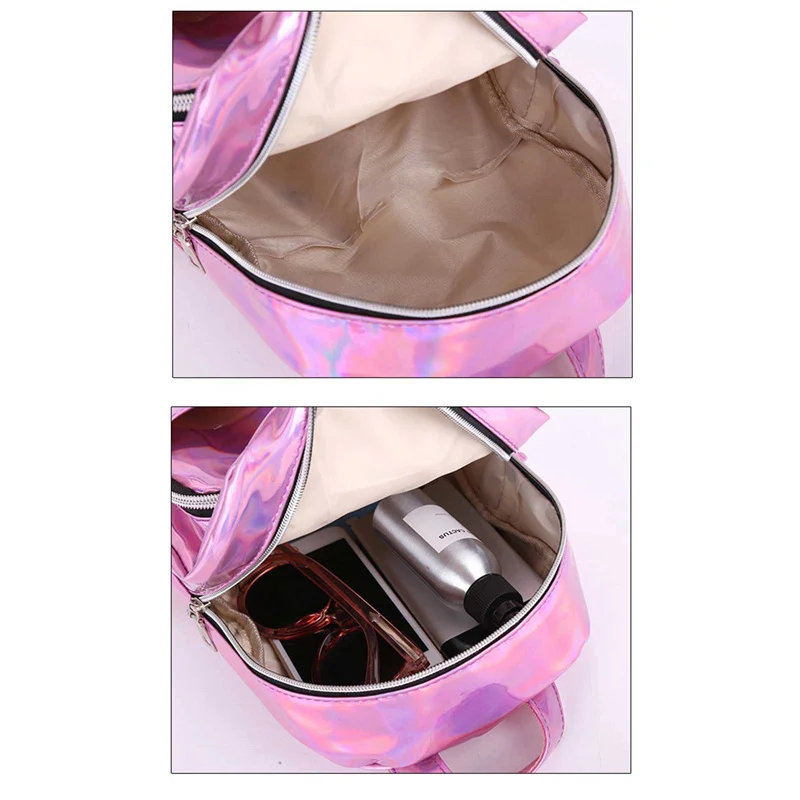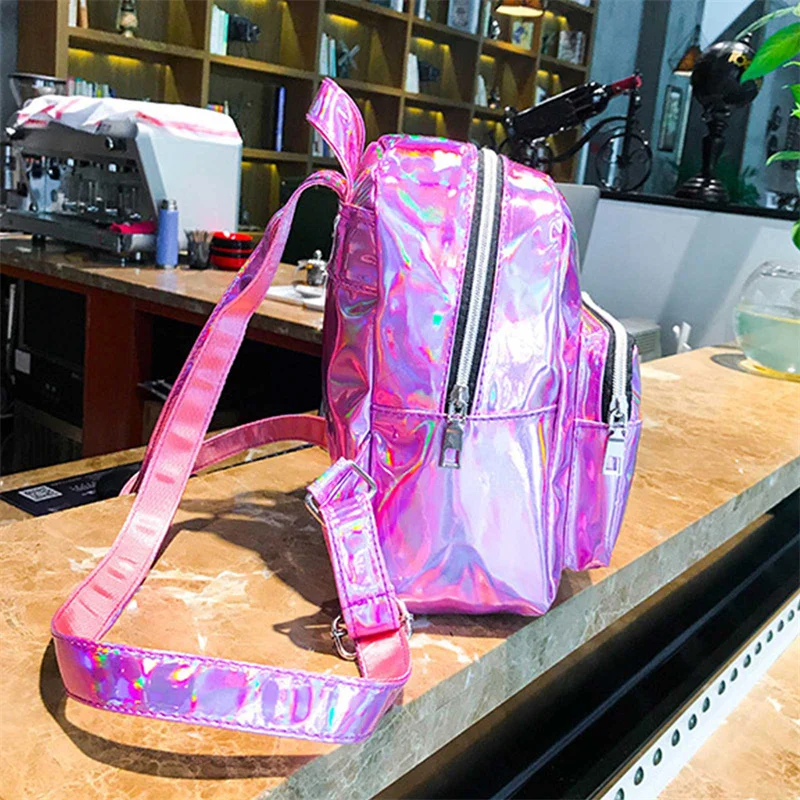Серебристо-розовый Модный Лазерный рюкзак, женская сумка, голографический маленький размер