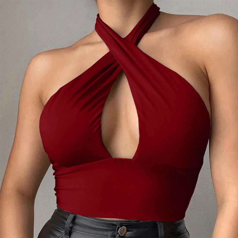 Укороченный топ с V-образным вырезом, без рукавов, с открытой спиной