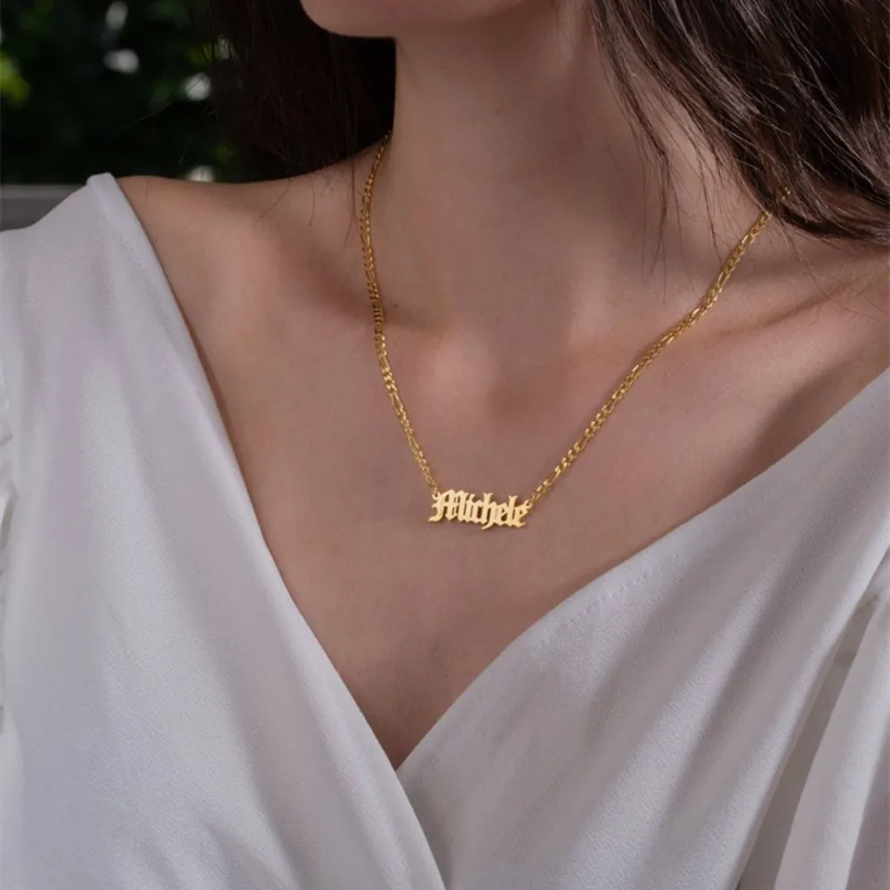 украшения на шею ожерелье на шею кулоны и подвески цепочка на шею Ожерелье Figaro Chian с именем на заказ, ожерелье из нержавеющей стали с именем на английском языке, ожерелье для женщин, ювелирные изделия в подарок