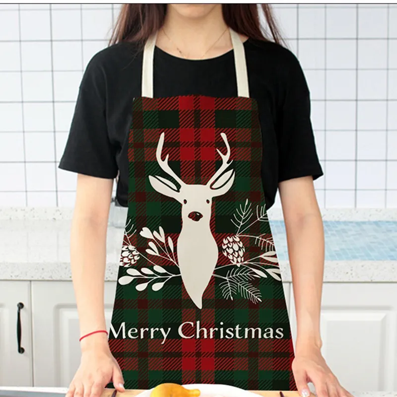 1 шт. Рождественский льняной клетчатый фартук с принтом, Рождественское украшение для дома, новый год 2022, подарок на рождевечерние ринку, Рождество 2021, декоративные украшения