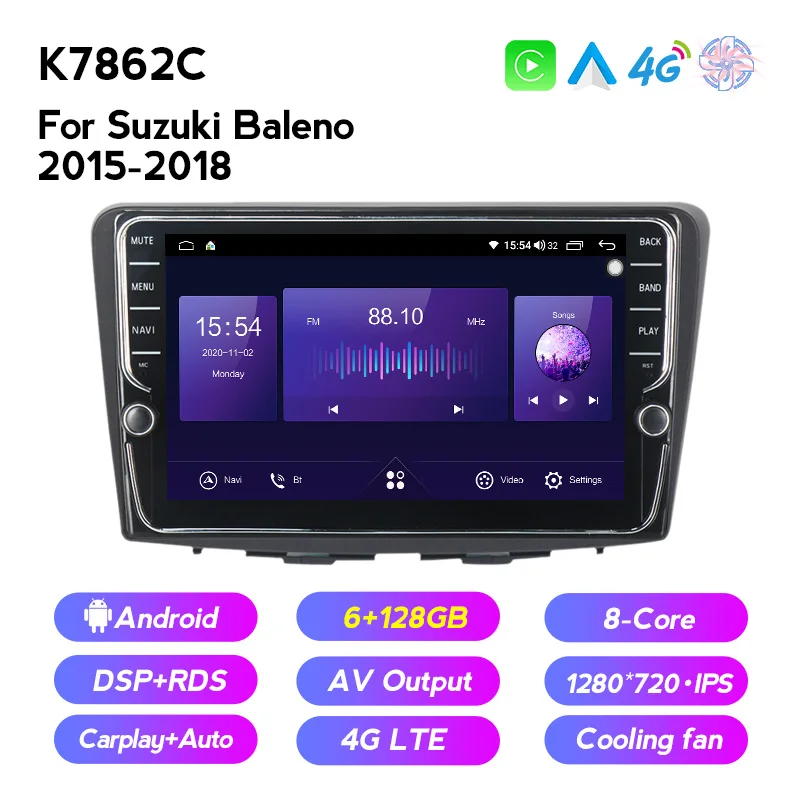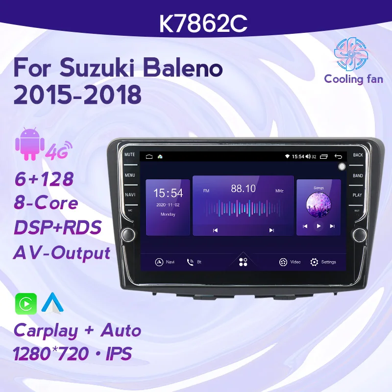 Carplay Auto Android 11 6 + 128G Автомобильный мультимедийный GPS навигатор для Suzuki Baleno 2015 2016 2017 2018 поддержка вентилятора охлаждения 4G LTE BT
