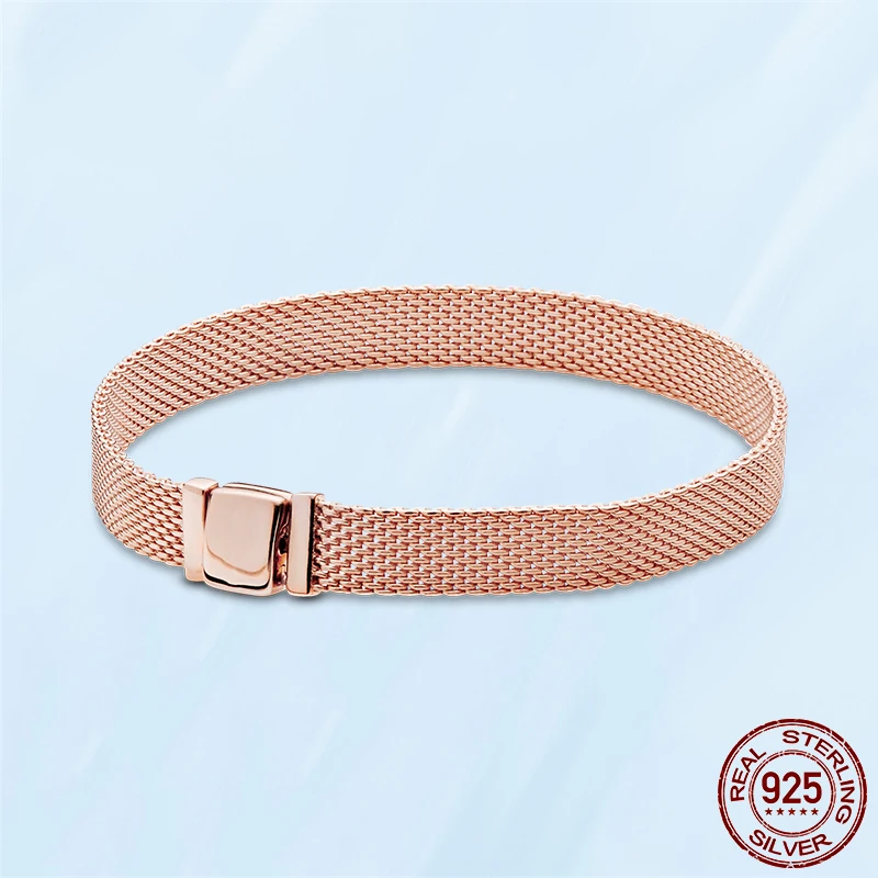 Женский браслет из серебра 925 пробы цвета розового золота с длинной застежкой