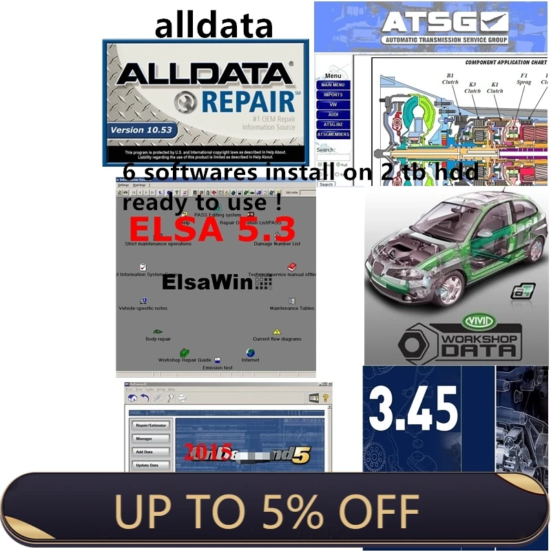 2021 программное обеспечение для ремонта автомобиля Alldata10.53, яркие данные о цехе, ElsaWin6.0 ATSG 2017 Auto.Data 3,45 Mit .. Chell, хорошо установить на жесткий диск
