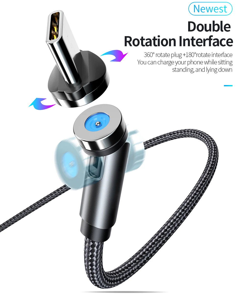 Вращающийся на 540 градусов Магнитный кабель для быстрой зарядки, к...