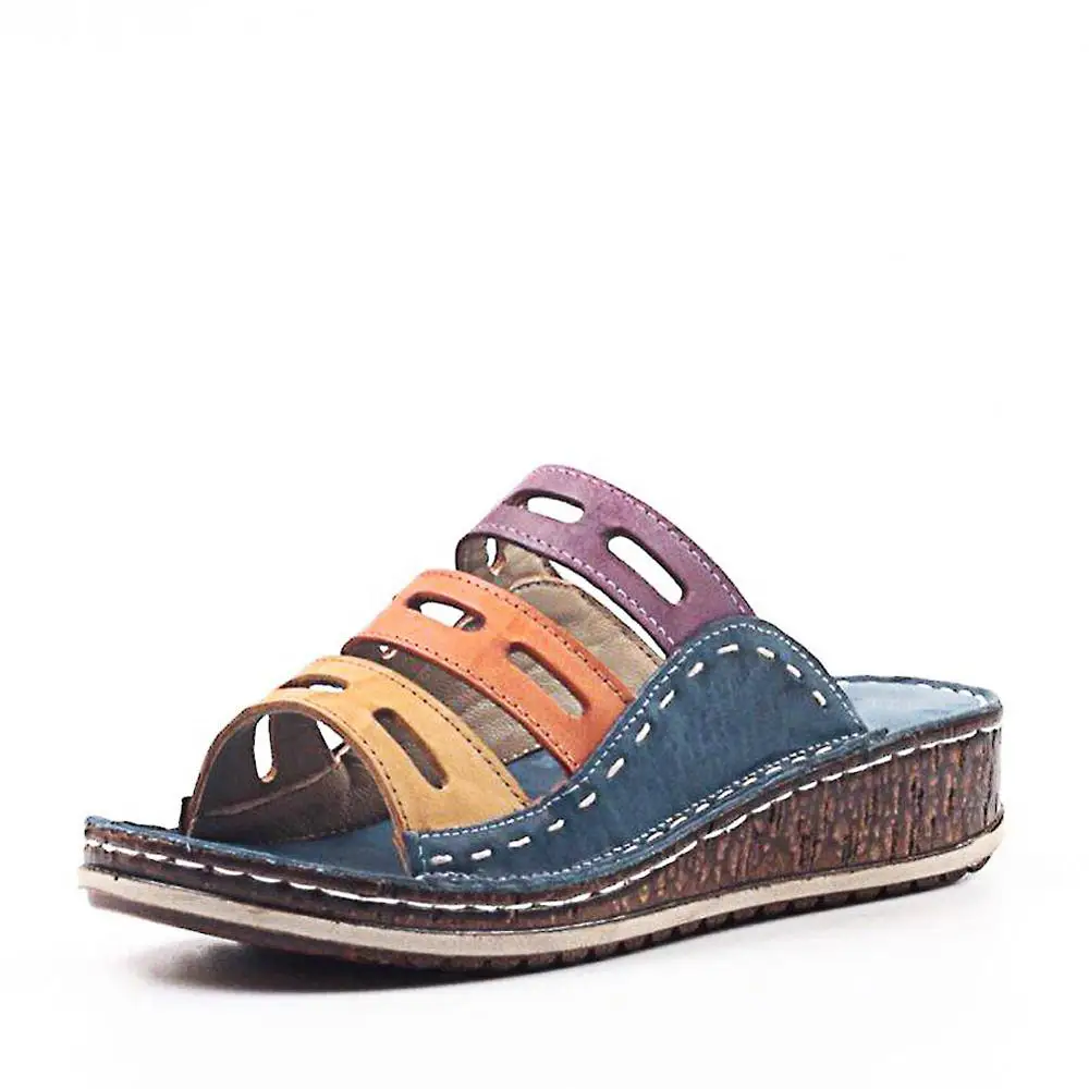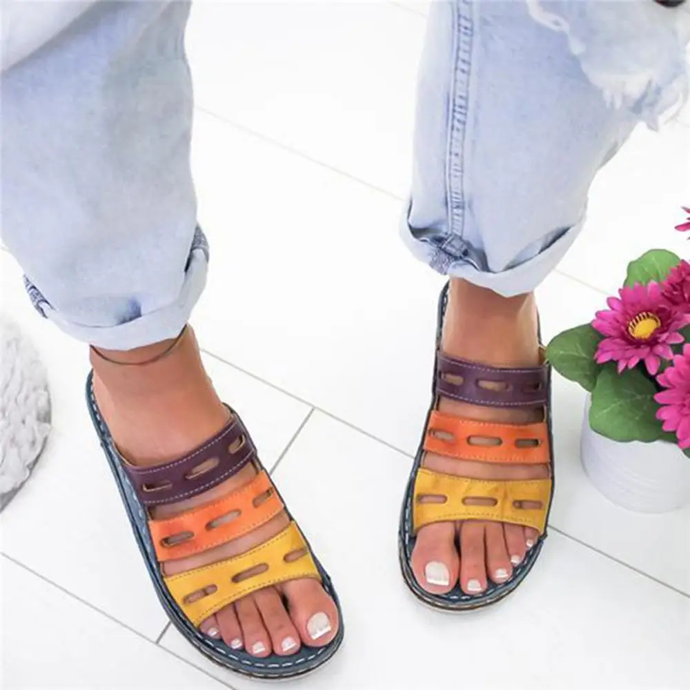 Женские шлепанцы на танкетке, летние, смешанные в стиле ретро цветн...