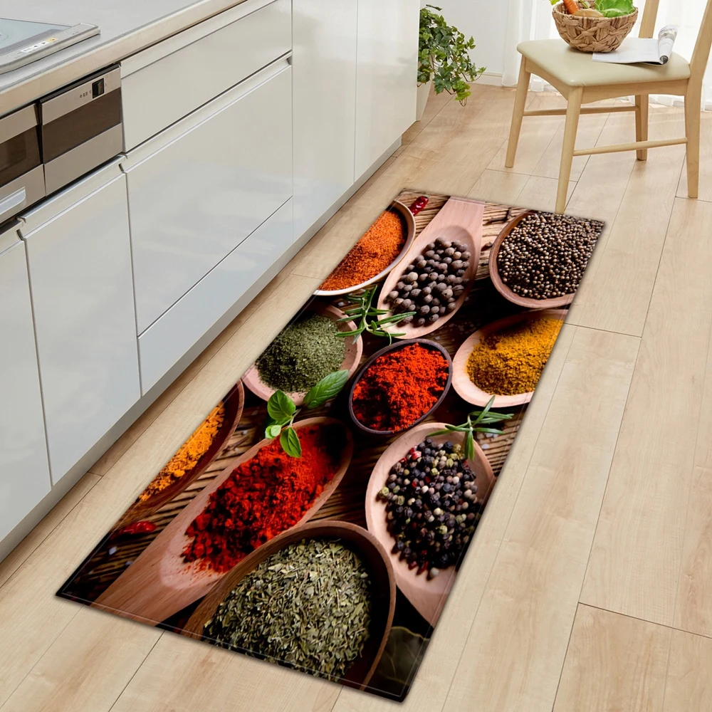 Кухонный напольный коврик с рисунком приправ, украшение для спальни, гостиной, длинный ковер для прихожей, ванной, Противоскользящие коврики