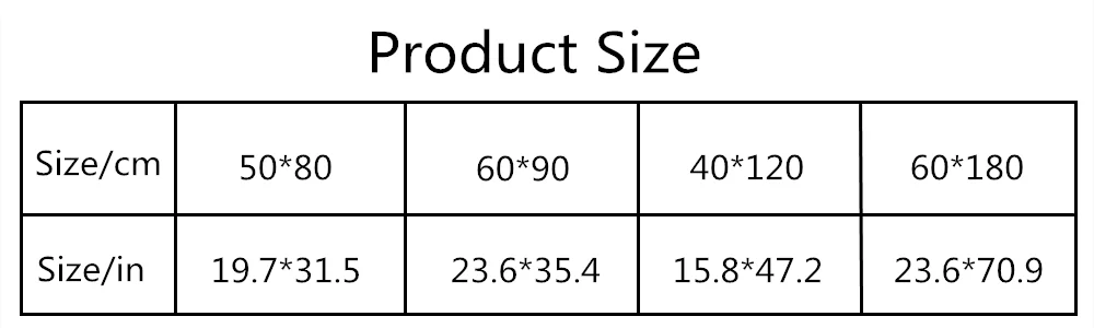 Характеристики40cmx120cm,60cmx90cm,60cmx180cm