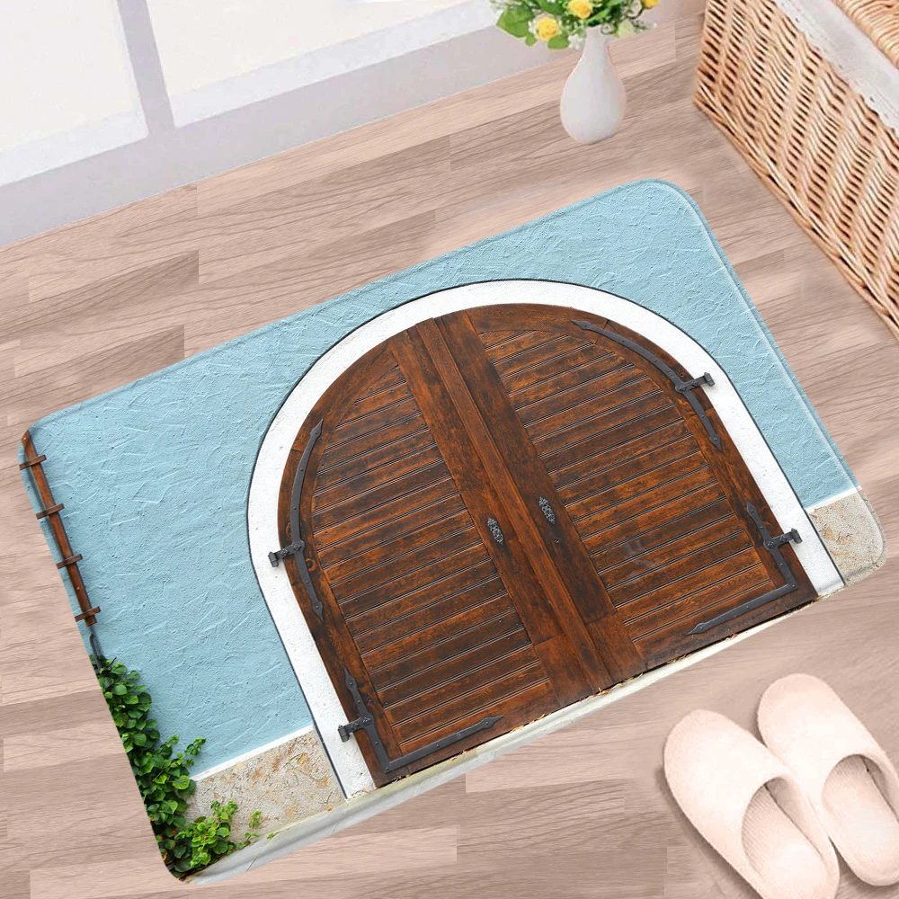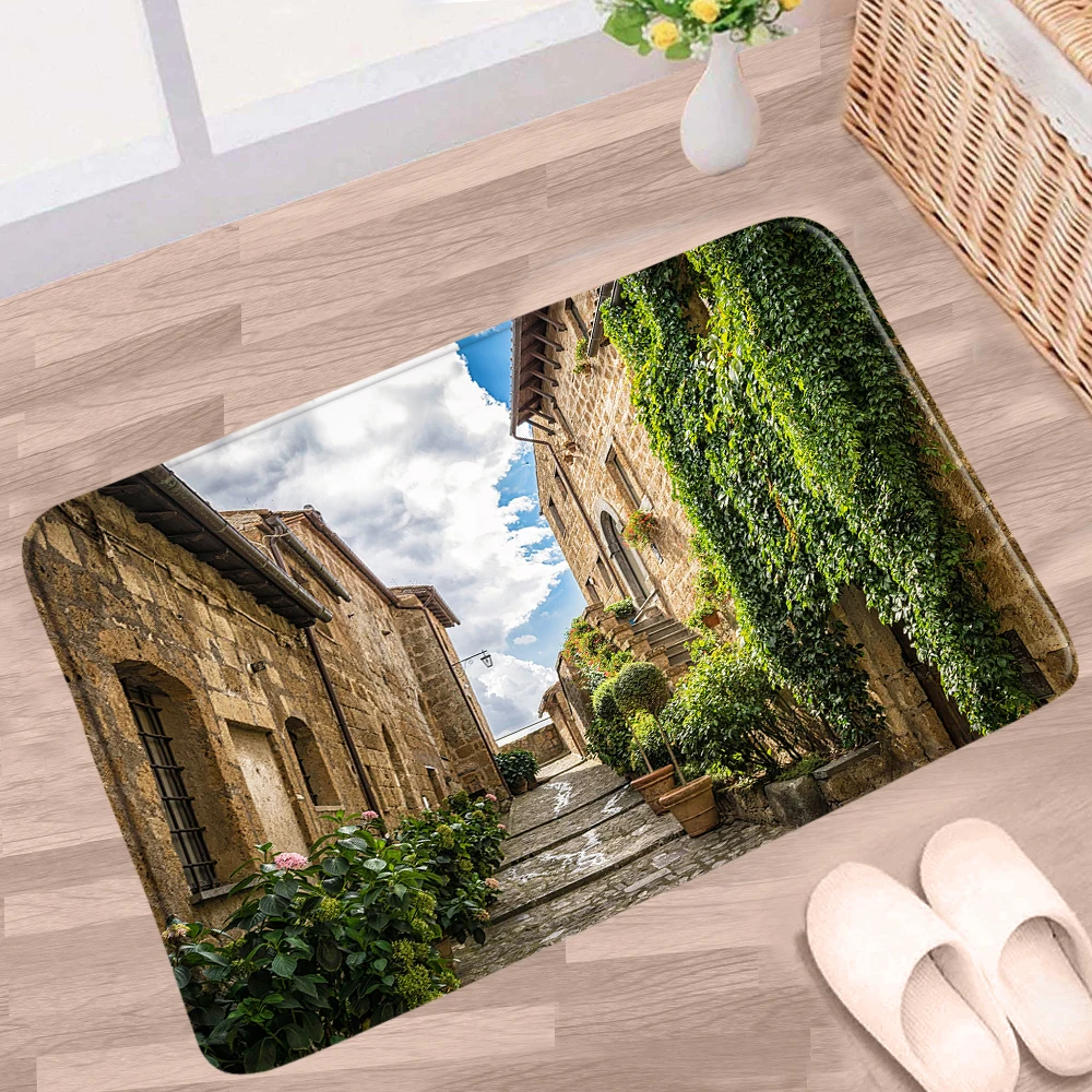 Коврик для ванной в стиле ретро, нескользящий, с изображением старой деревянной двери, уличных цветов, растений, каменной стены, для ванной, кухни, коридора