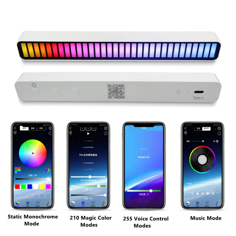 【Поставляется с AGC автоматическим регулятором усиления 】-Встроенный высокочувствительный микрофон (Голосовое управление), 32 цветовых шарика лампы, 4 уровня яркости, 5 уровней скорости, 18 цветовых режимов, интеллектуальный алгоритм денозирования, может использоваться в шумной среде.