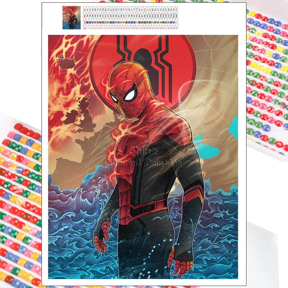 Алмазная живопись Спайдермен Marvel супергерой искусство мультфильм китайский стиль 5D Сделай Сам Вышивка мозаика полная квадратная ручная работа домашний декор
