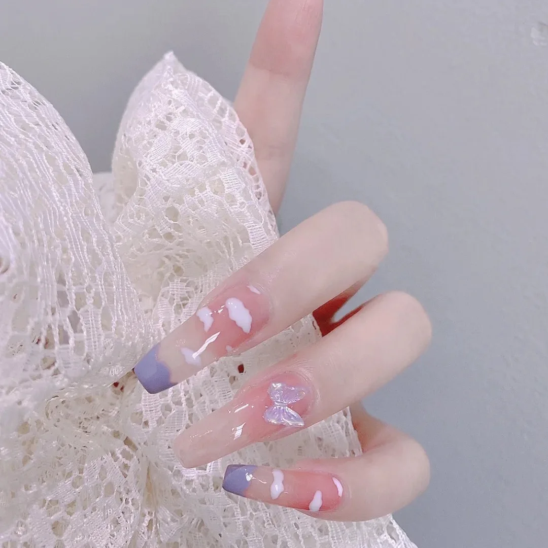 Небесно-Голубое облако накладные ногти длинная балерина бабочка пер...