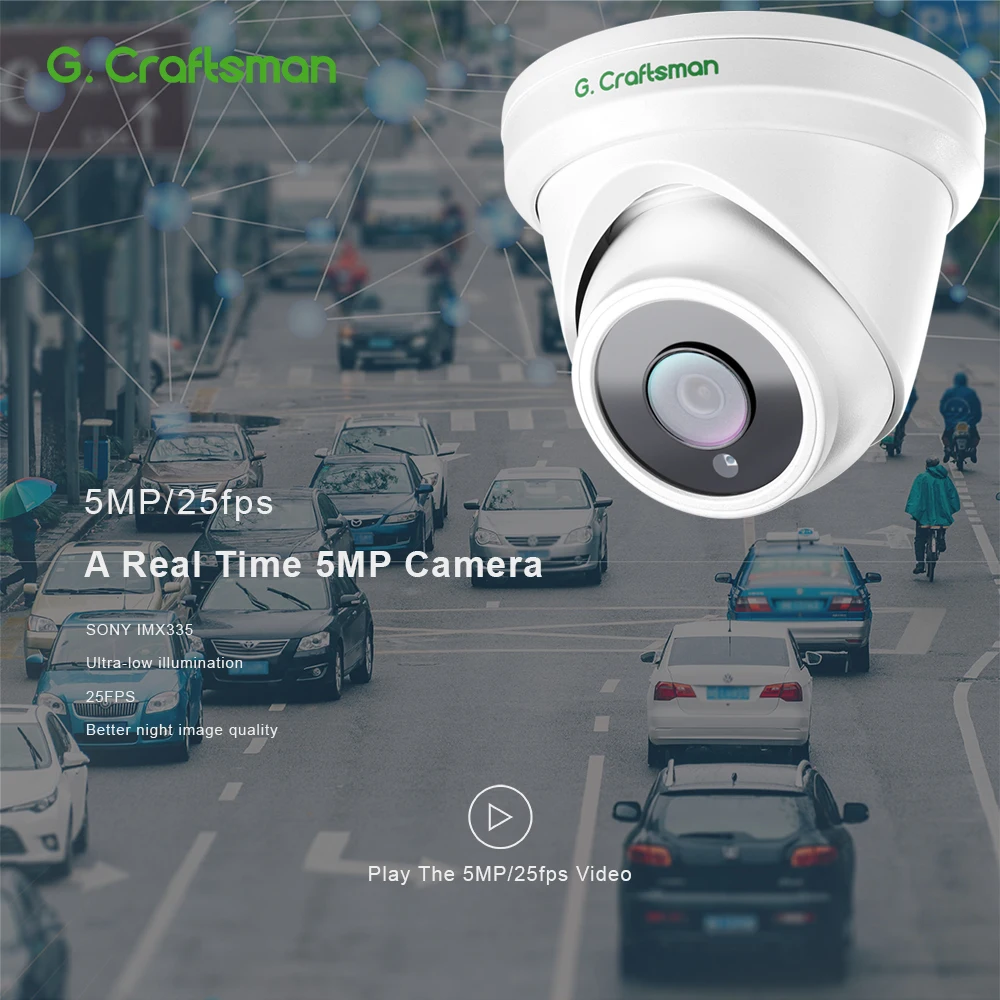 Купольная IP-камера видеонаблюдения, 5 МП, 25 кадровс, POE