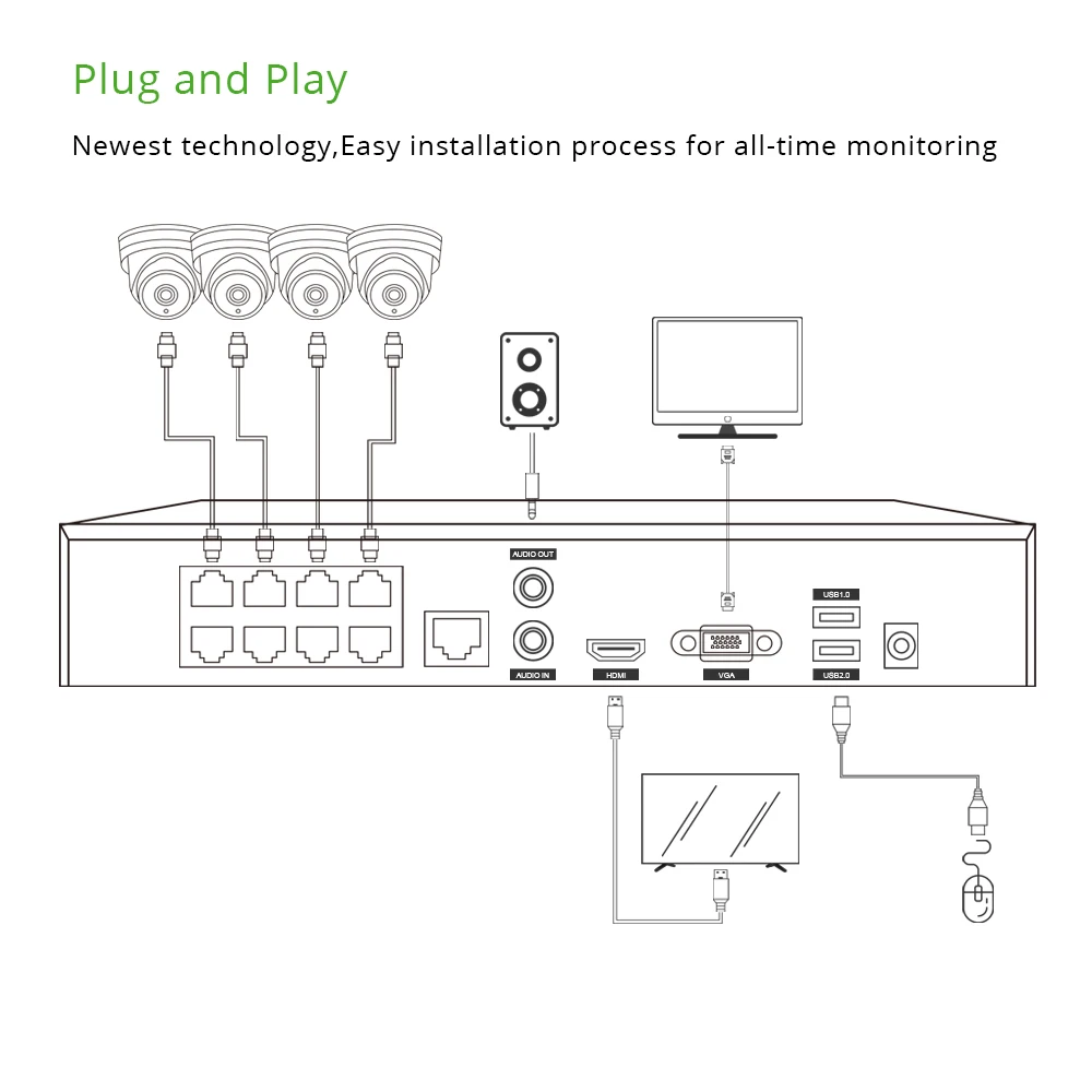 Для передачи видеосигнала и одновременного питания камеры необходим только один Ethernet кабель, поэтому вам не нужно использовать отдельный адаптер питания для подключения каждой камеры к ближайшему источнику питания. Безопасная, Стабильная и надежная передача питания всегда гарантируется.