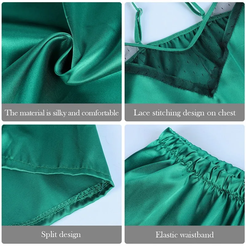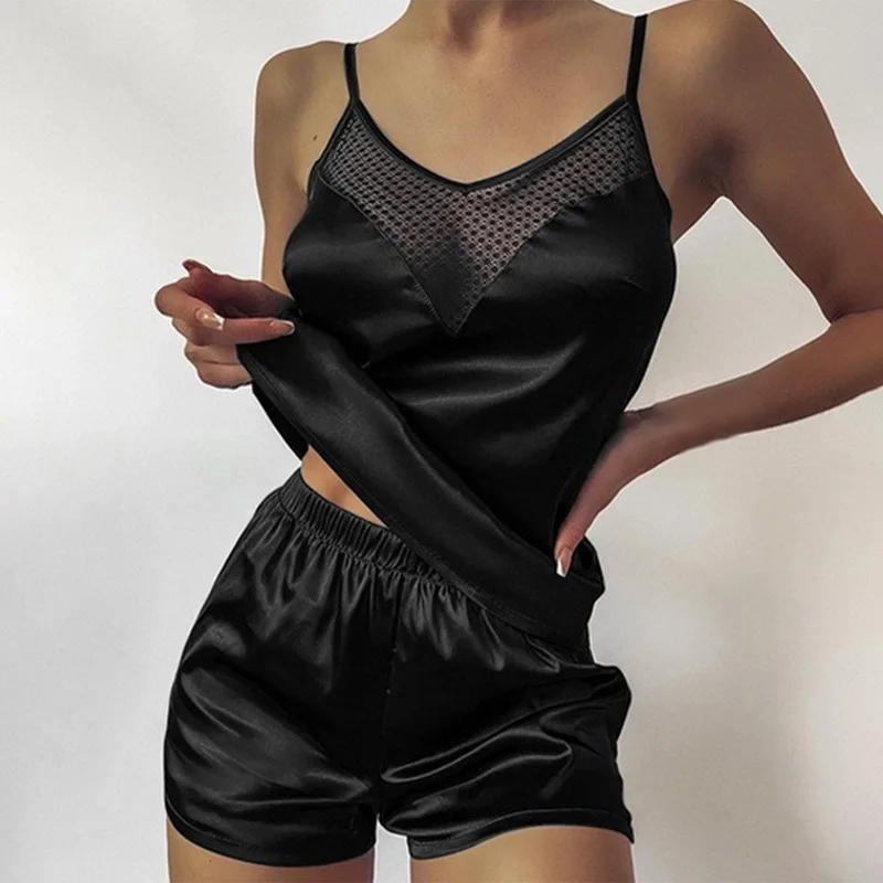 Упаковка: 1 комплект кружевных атласных пижам