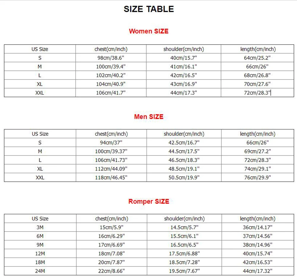 Американский размер Грудь (см/дюйм) Плечо (см/дюйм) Длина (см/дюйм) 3 м 15 см/5,9'' 14,5 см/5,7'' 36 см/14,17'' 6 м 16 см/6,29'' 15,5 см/6,1'' 37 см/14,56'' 9 м 17 см/6,69'' 16,5 см/6,5'' 38 см/14,96'' 12 м 18 см/7,08'' 17,5 см/6,88'' 40 см/15,74'' 18M 20 см/7,87'' 18,5 см/7,28'' 42 см/16,53'' 24 м 22 см/8,66'' 19,5 см/7,67'' 44 см/17,32''
