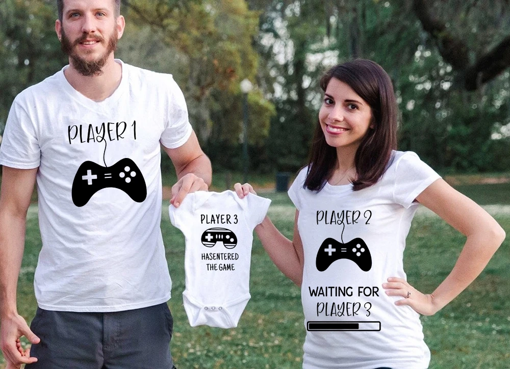 1 игрок 2 Wahtching для игрока 3 забавные парные футболки для беременных подарки для будущей мамы объявление о беременности
