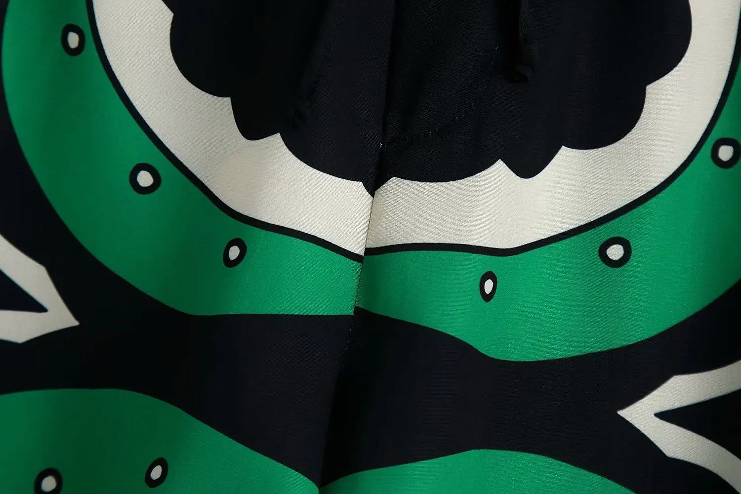 Модный женский костюм с шортами, новинка 2021, зеленые короткие брюки с высокой талией и принтом, Женские винтажные свободные шорты, Повседневная Уличная одежда