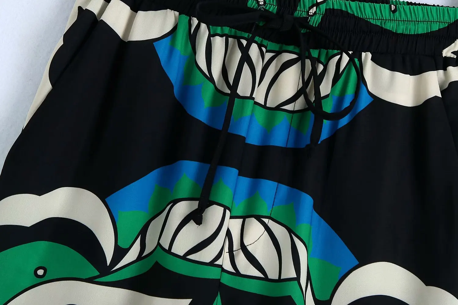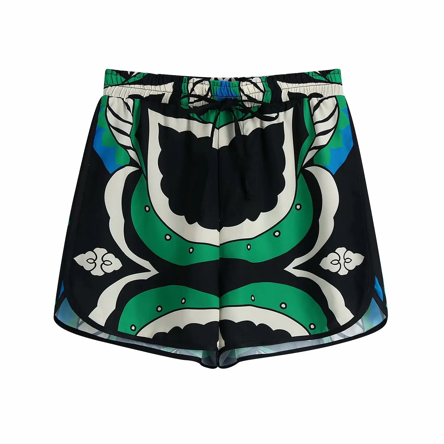 Female Shirts Chic ShortsGreen Print Summer Top Shorts Suit