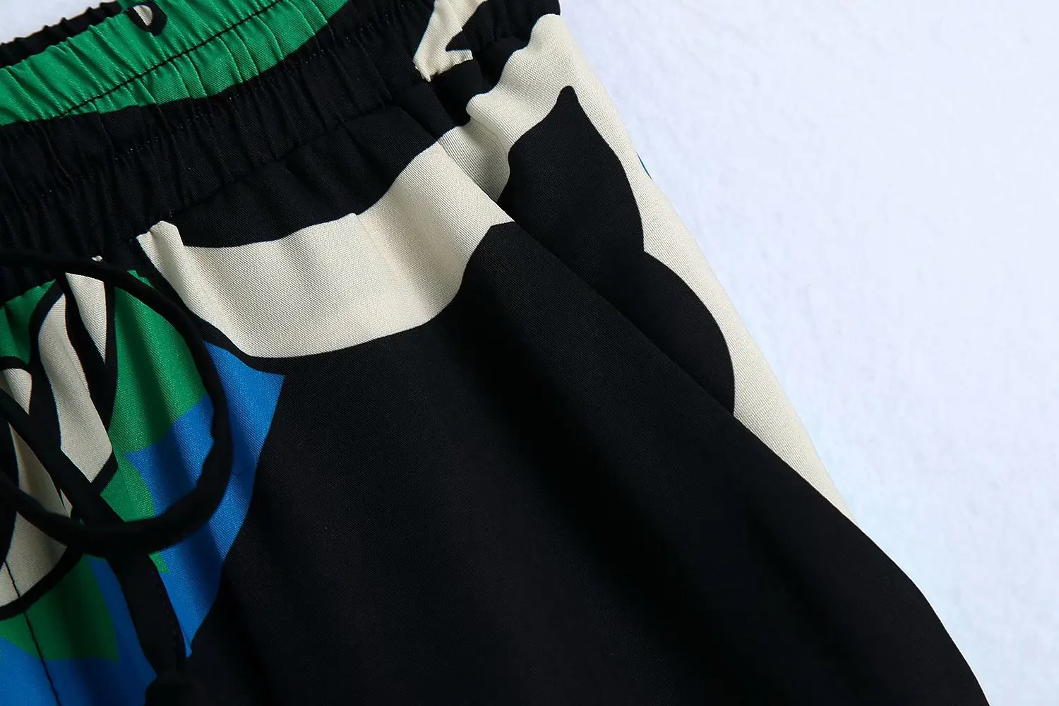 Casual Fashion SportswearPrinting Waistband Shirt+High Waist Pants