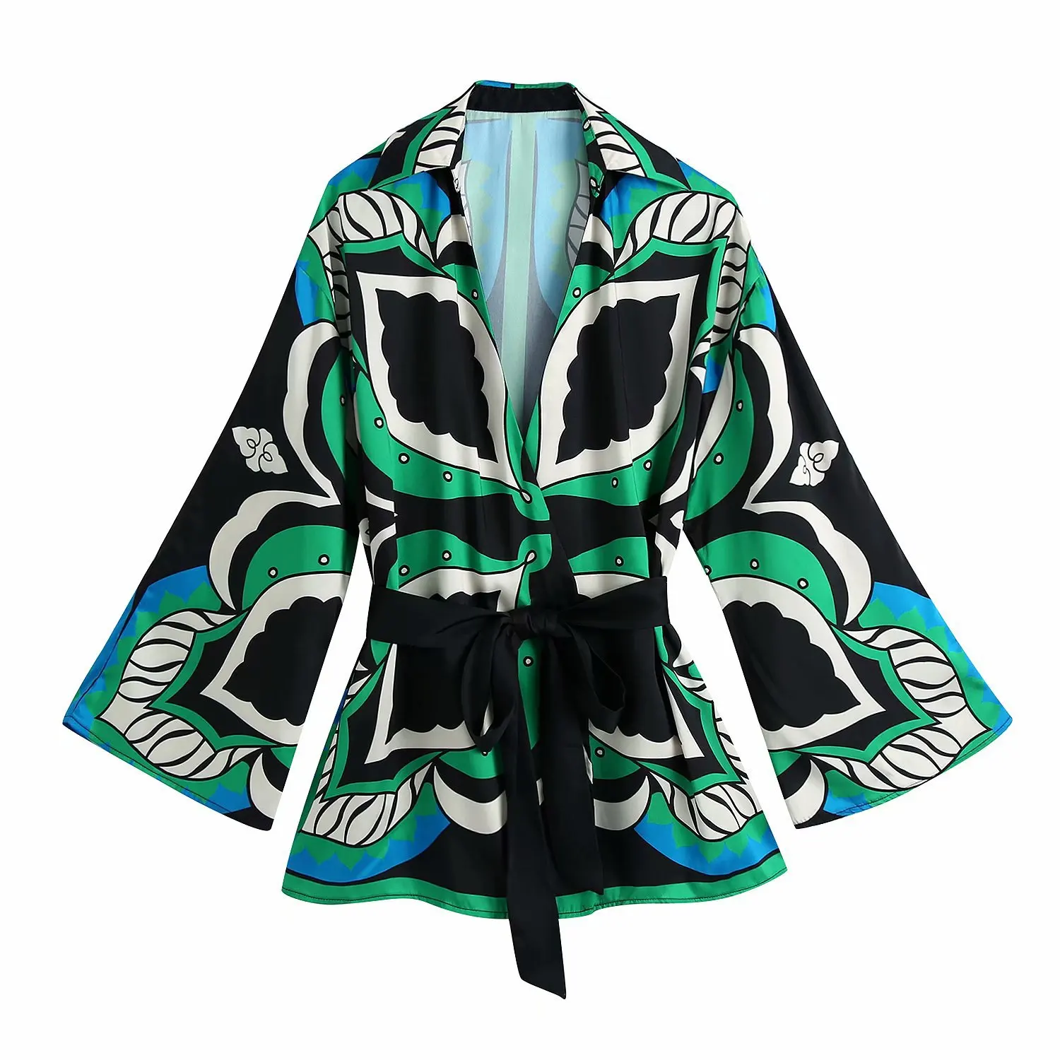 Женский костюм-кимоно с принтом, Длинная зеленая рубашка оверсайз с...