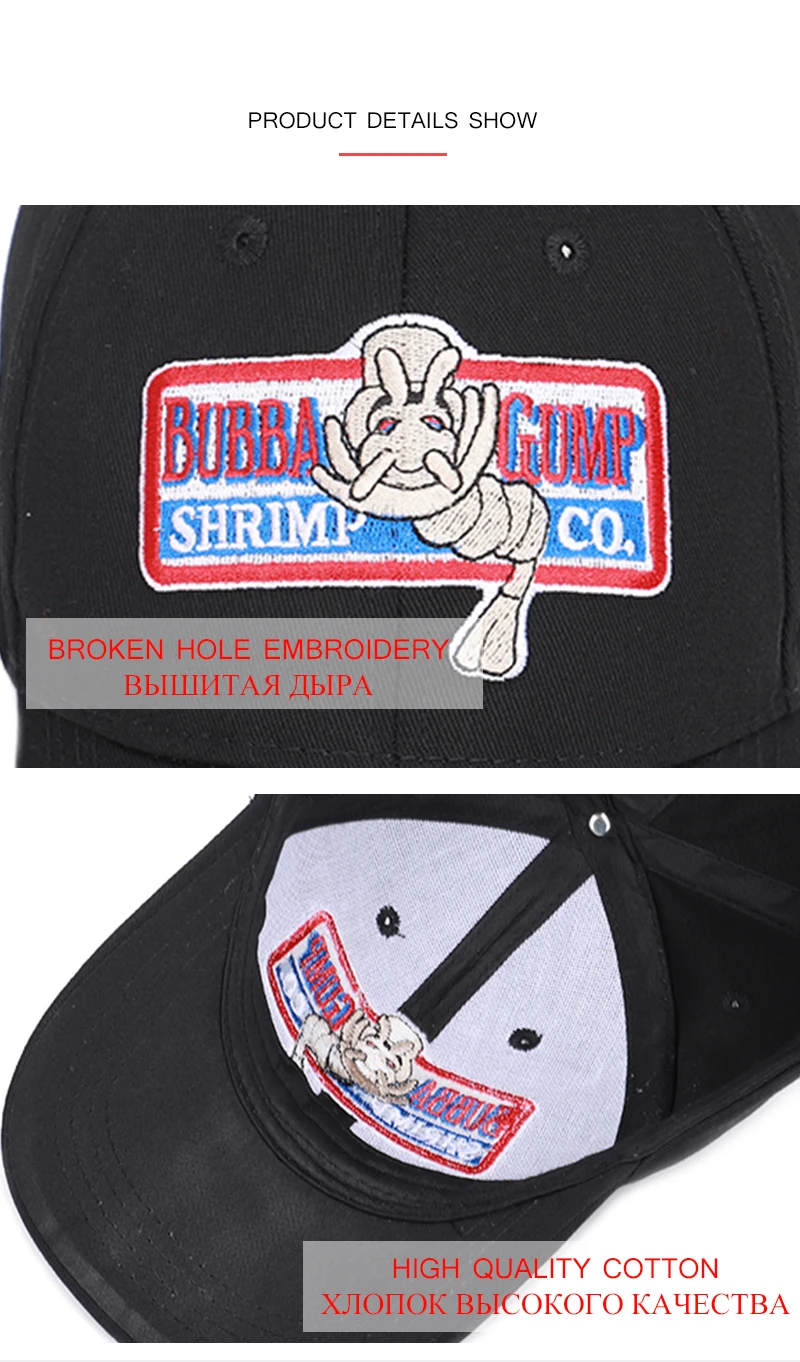Бейсболка с вышивкой BUBBA GUMP креветки в стиле ретро, черная бейс...