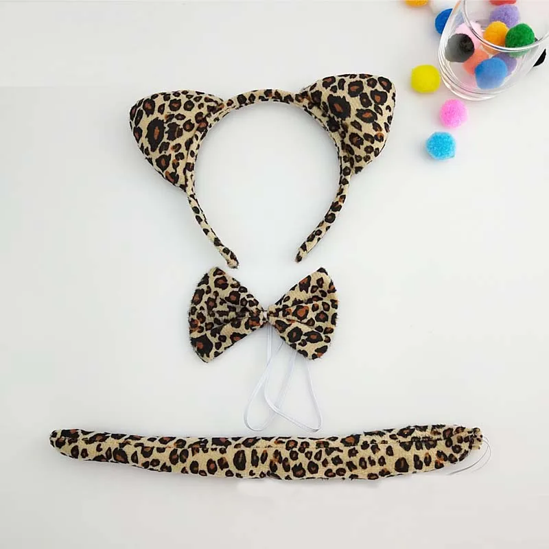 Плюшевые леопардовые повязки на голову для вечевечерние, бант, хвос...
