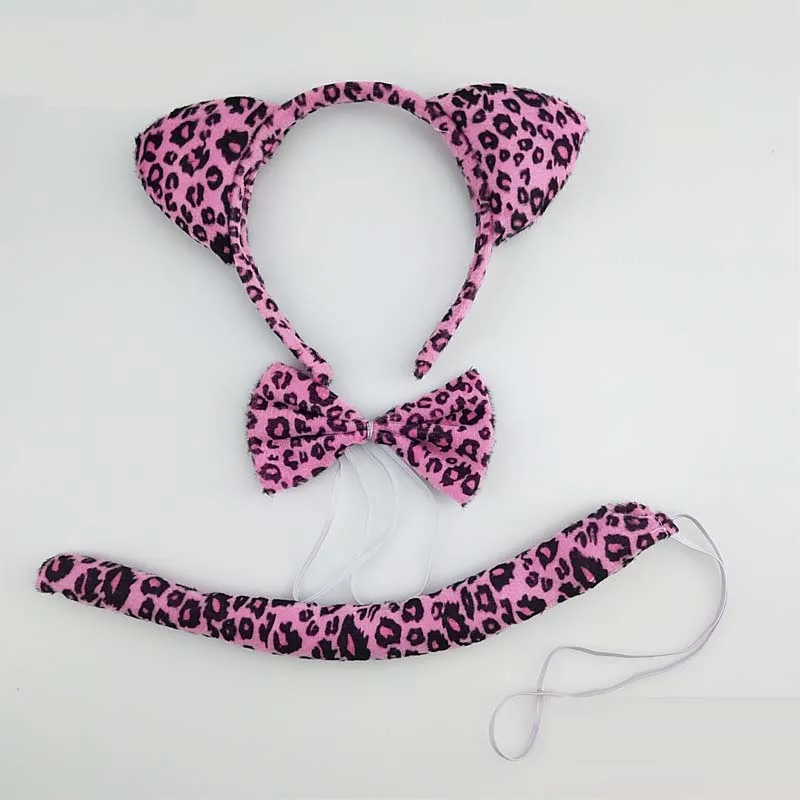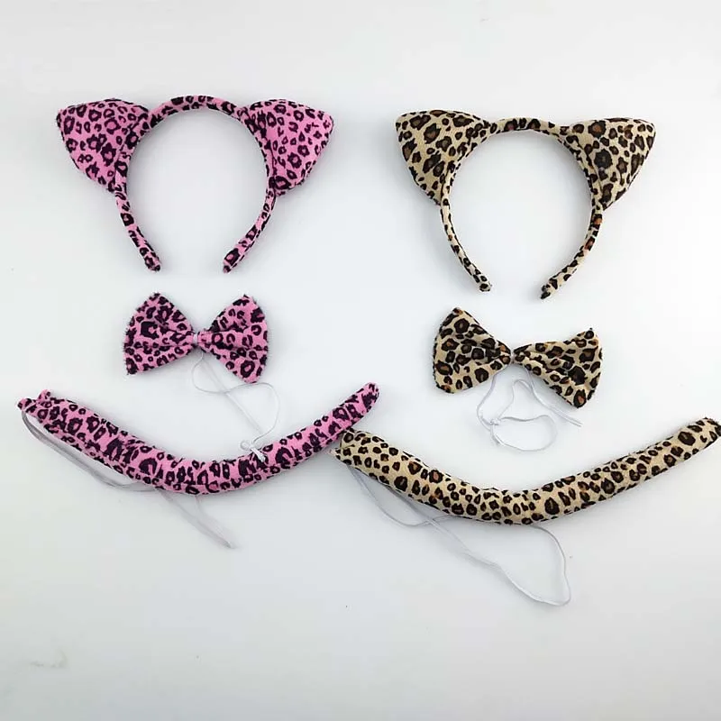 Повязка на голову с кошачьими леопардовыми ушками для вечеринки, бант, хвост, головной убор с леопардовым принтом, повязка для волос с животными для косплея, плюшевая повязка для волос на день рождения, очистка