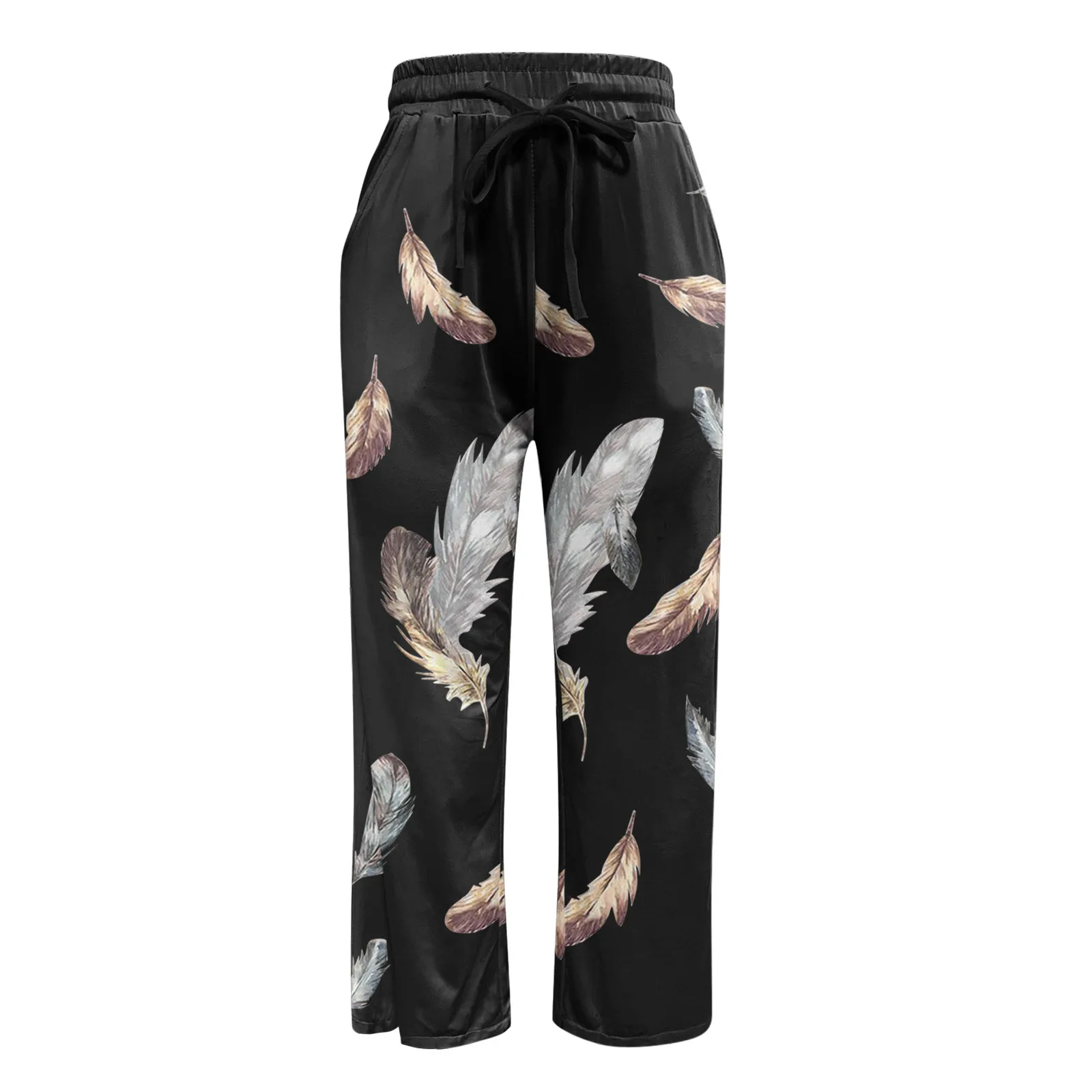 Брюки женские с завышенной талией, широкие штаны с цветочным принтом, простые брюки, длинные пляжные капри в стиле бохо с карманами