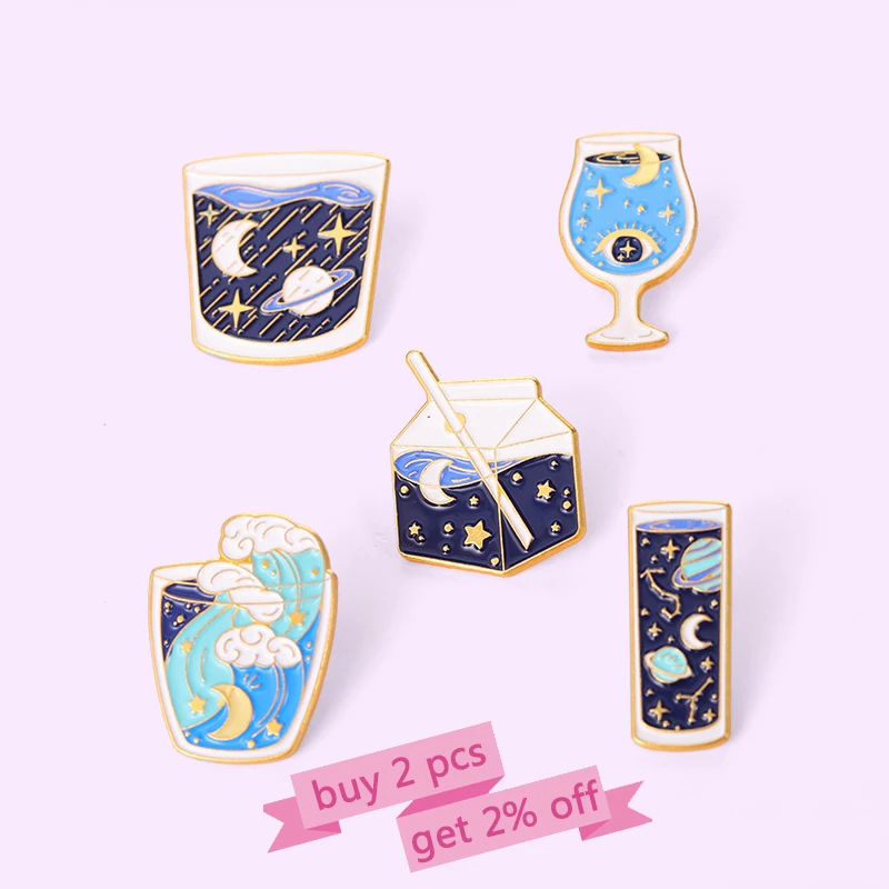Звездное небо бутылки молока эмаль булавки Вселенная море искусстве...