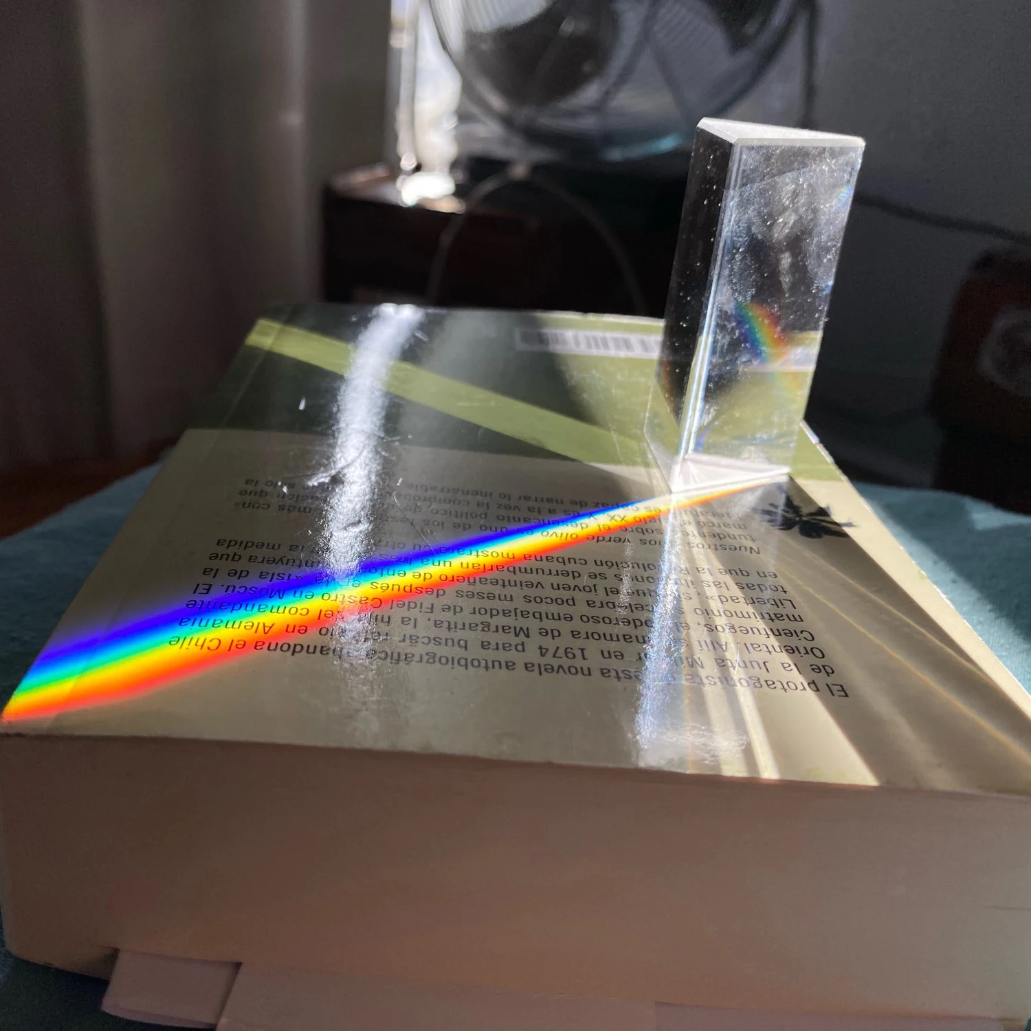 Когда светильник перемещается из воздуха в Стекло призмы, происходит рефракция на светильник. Дизайн призмы заставляет светильник менять направление. Луч светильник состоит из множества длин волн светильник. Каждая длина волны проходит через призму с разным сопротивлением, чем другой светильник. Различные длины волн обычно путешествуют вместе, но рассеиваются через призму, и мы можем видеть их отдельно как радугу.