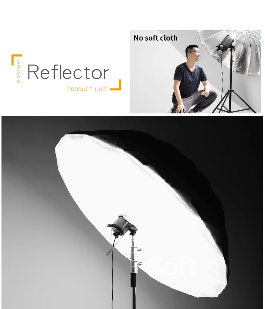Светоотражающий Зонт Godox, 70 дюймов, 178 см, серебристый, белый, черный, прозрачный, мягкий + большая крышка рассеивателя + стойка для светильник 2,8 м + кронштейн