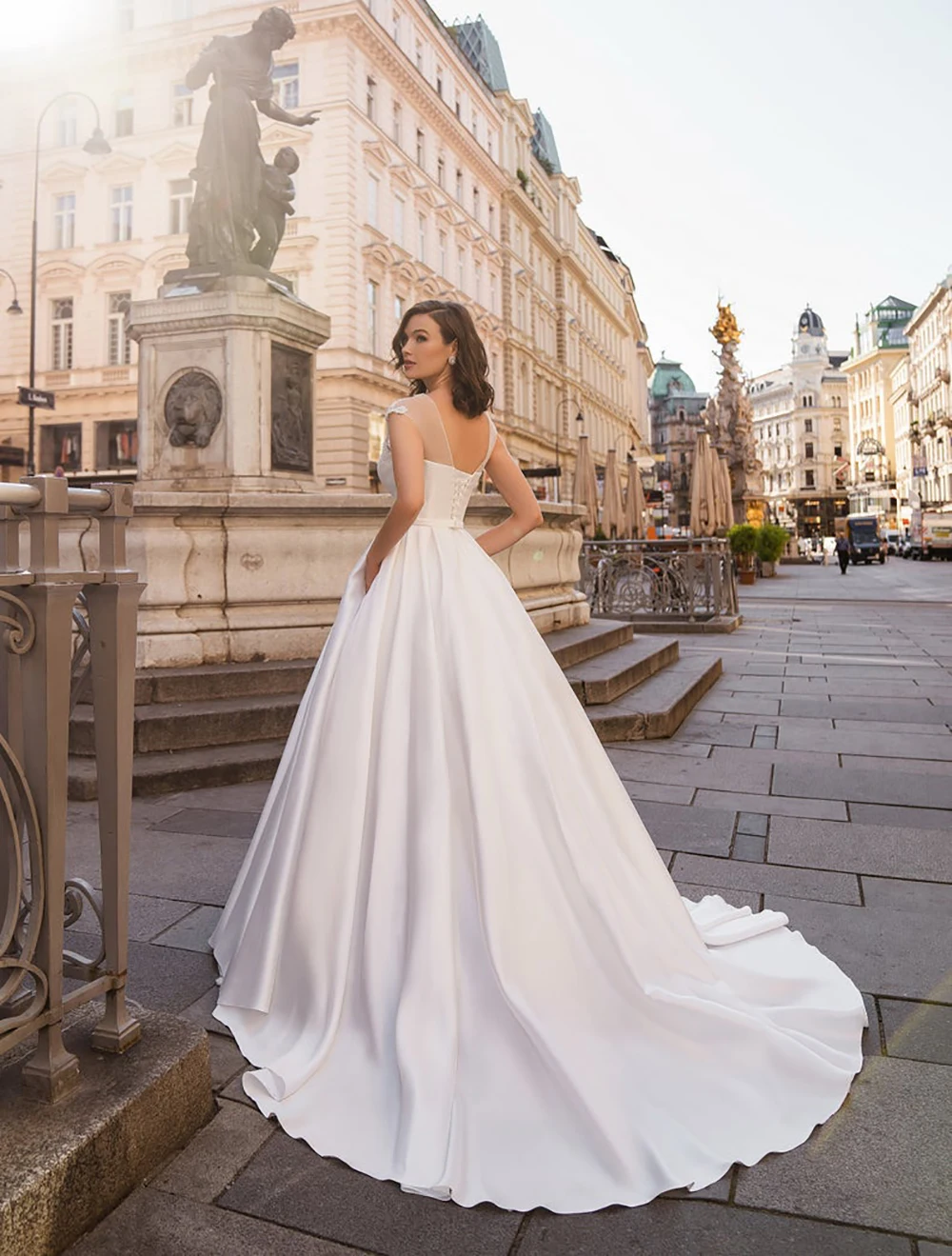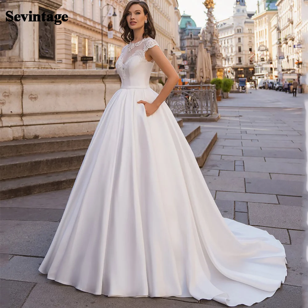 Простое атласное свадебное платье Sevintage, женское платье с открытой спиной и рукавами-крылышками в стиле бохо, свадебное платье с карманами