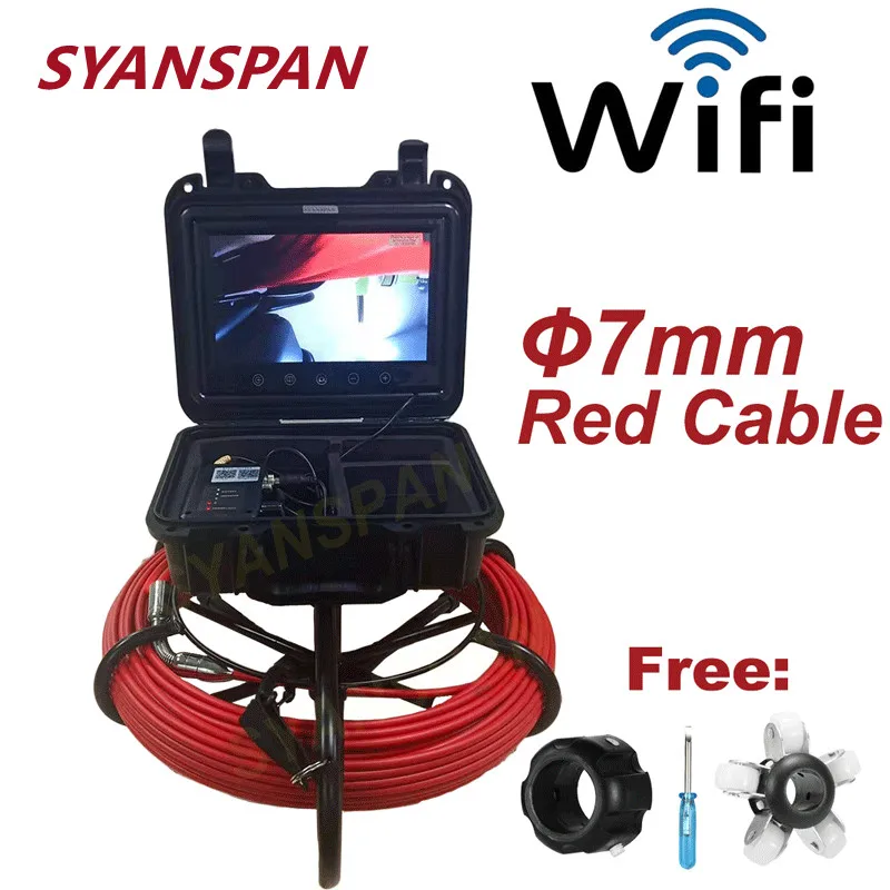 Все-в-одном 7 мм в диаметре красный провод 20-50 м SYANSPAN беспроводная Wi-Fi труба инспекционная видеокамера, канализационный трубопровод промышленный эндоскоп поддержка 3 Android или IOS устройств одновременно