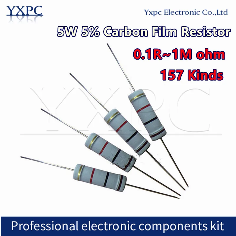 10 шт., карбоновый пленочный резистор 5 Вт 5%, 4,7 R, 1R 1M, 2,2 R, 10R, 22R, 47R, 51R, 100R, 150R, 470R, 1K, 100 K, 10K, 47K, 1, 150, 10, 22, 47, 51, 470,