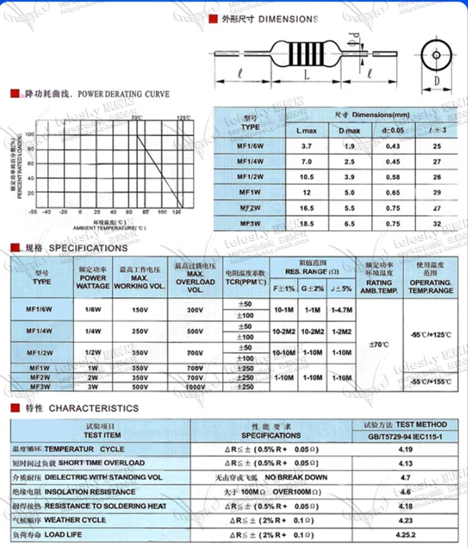 100 шт. 16 Вт 18 Вт (0,125 Вт) 1% металлический пленочный резистор ...