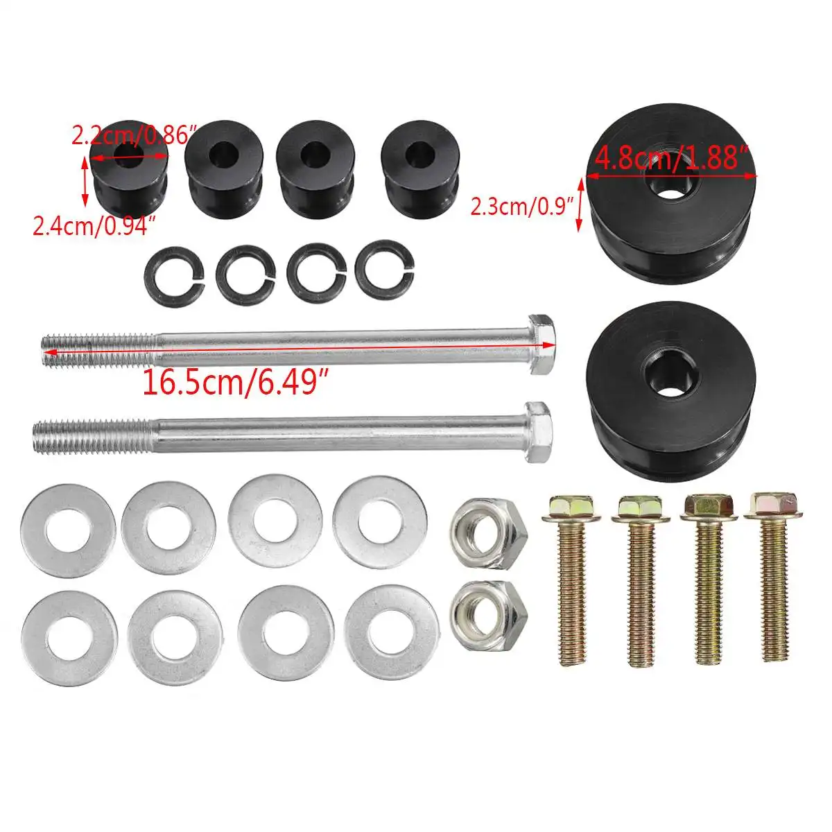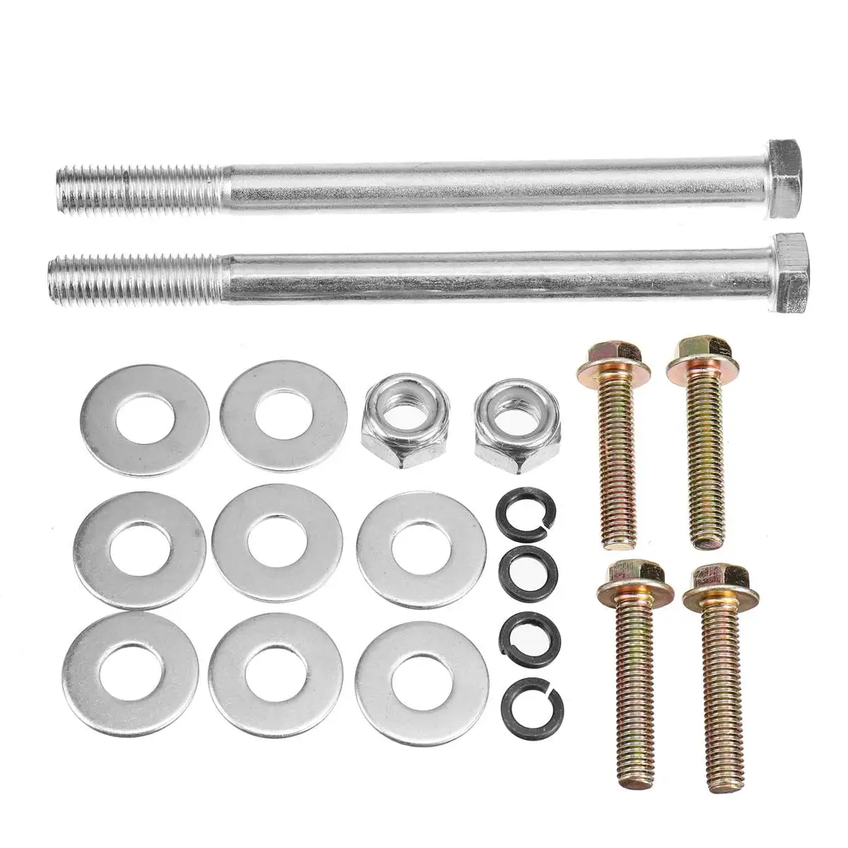 -При поднятии транспортного средства IFS угол соединения постоянной скорости (CV) увеличивается. Этот увеличенный угол соединения CV во время работы ускоряет износ соединения и накладывает дополнительное напряжение на экран CV, вызывая трещину CV и, в конечном итоге, преждевременный выход из строя. Если установлены большие (более широкие) колеса и шины, этот износ ускорится еще больше.-Болты в комплекте корректируют геометрию переднего приводного вала и CV, снижая передний дифференциал примерно на 25 мм, тем самым уменьшается угол, под которым необходимо работать соединение CV, и избегается дорогая Замена CV и ботинок. Позволяет переустановить базовую плату.
