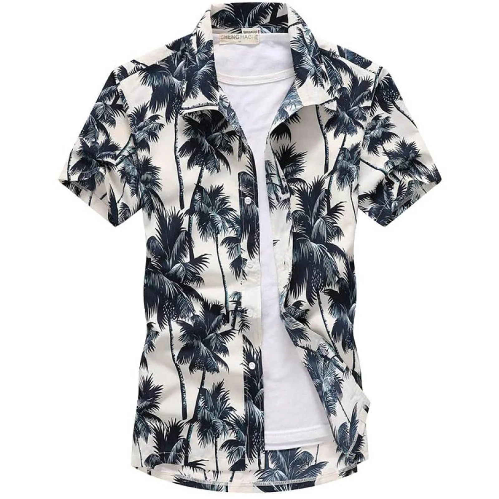 Брендовая Летняя мужская пляжная рубашка с принтом, 2021, Модные свободные повседневные рубашки с коротким рукавом, с цветочным принтом, большие Азиатские размеры S-4XL, 5XL, Гавайские