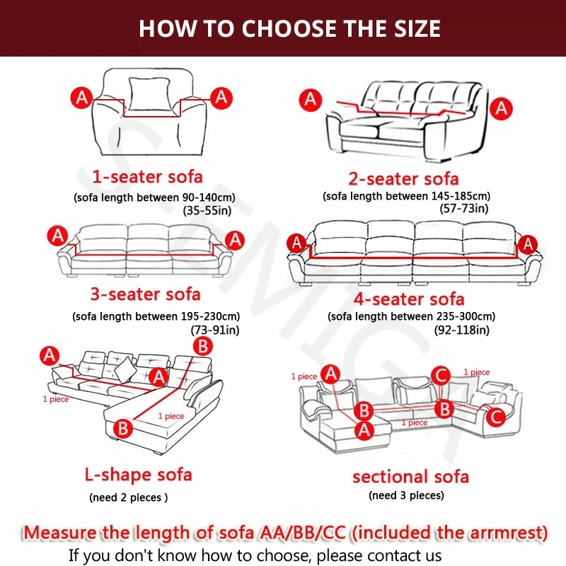 Как выбрать чехол для дивана?Для секционного или углового дивана мы предлагаем приобрести 2 чехла.Размер чехла будет зависеть от длины линий AA, BB и CC. Например: если AA = 200 см, BB = 160 см,Затем вы должны выбрать 1 трехместный диван-чехол и 1 двухместный диван-чехол.