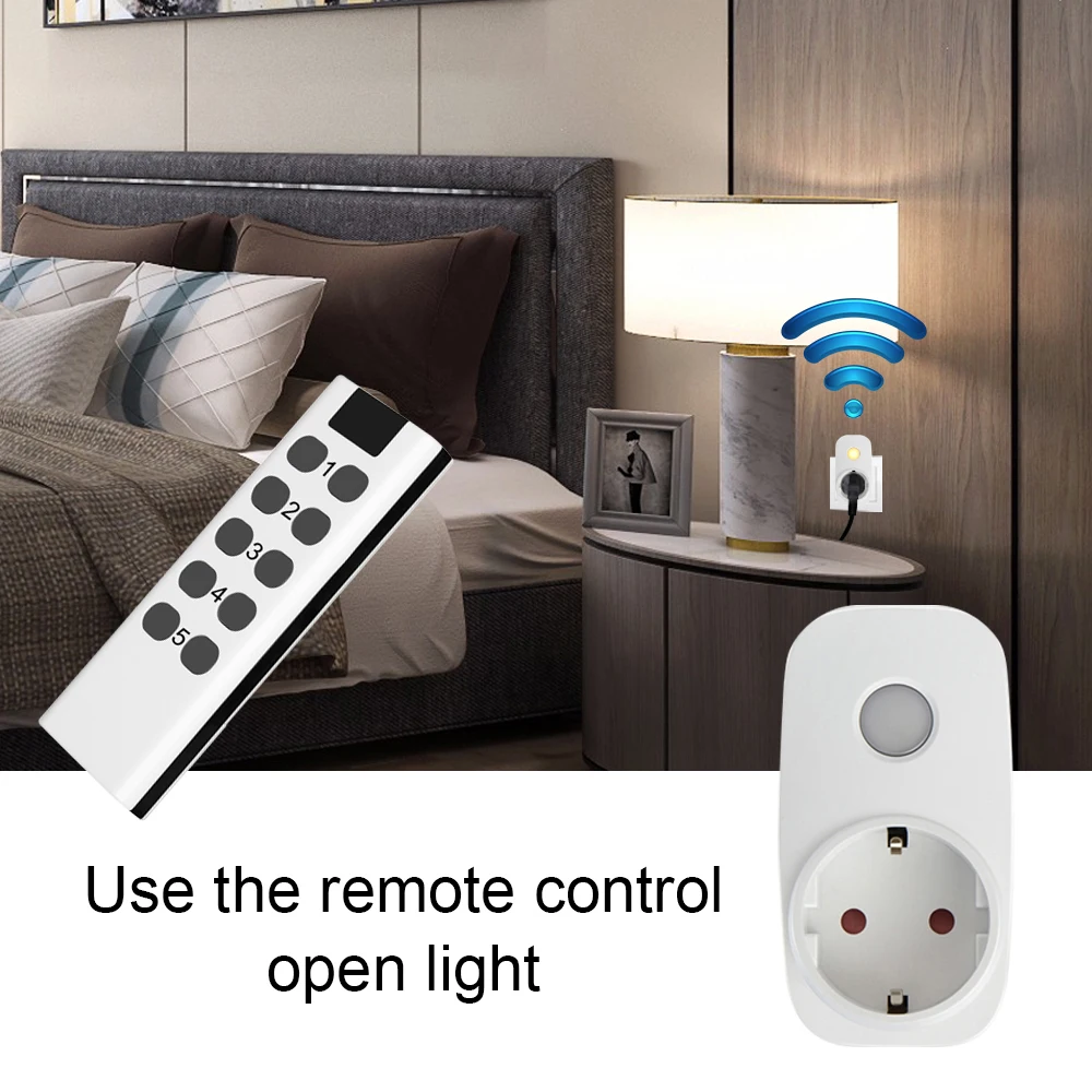 ◆Розетка может управляться вручную или с помощью пульта дистанционного управления.◆Ночной светильник может управляться только передатчиком.◆Приемник розетки по-прежнему будет оставаться в режиме «OFF» после отключения питания, даже когда питание снова включается.◆ Передатчик и приёмник можно свободно комбинировать (передатчик или приёмник должны быть от нашей компании), нужно только программировать в соответствии с руководством."1 розетка только" представляет только гнездо (за исключением пульта дистанционного управления); "1 удалитель только" представляет только пульт дистанционного управления (за исключением гнезда). Пульт дистанционного управления и розетка этого продукта не могут использоваться с другими продуктами, даже если частота одинаковая. Поэтому, если вы не приобрели этот продукт, пожалуйста, не приобретайте отдельный пульт дистанционного управления или гнездо, в противном случае вы не можете использовать его с вашим продуктом. Большое спасибо за понимание.Розетка-приемникВход Напряжение: 230 В переменного тока, 50/60 ГцМакс. Ток нагрузки: 16AЧастота передачи: 433 МГцПередатчикМощность передатчика: 1 секция DC12V 23A батареи(Убедитесь, что установка батареи правильная, продукт не включает батарею)Этот продукт может быть использован в сочетании с BroadLink RM 4pro, и он может быть удаленно управляется мобильными телефонами после ссылки.