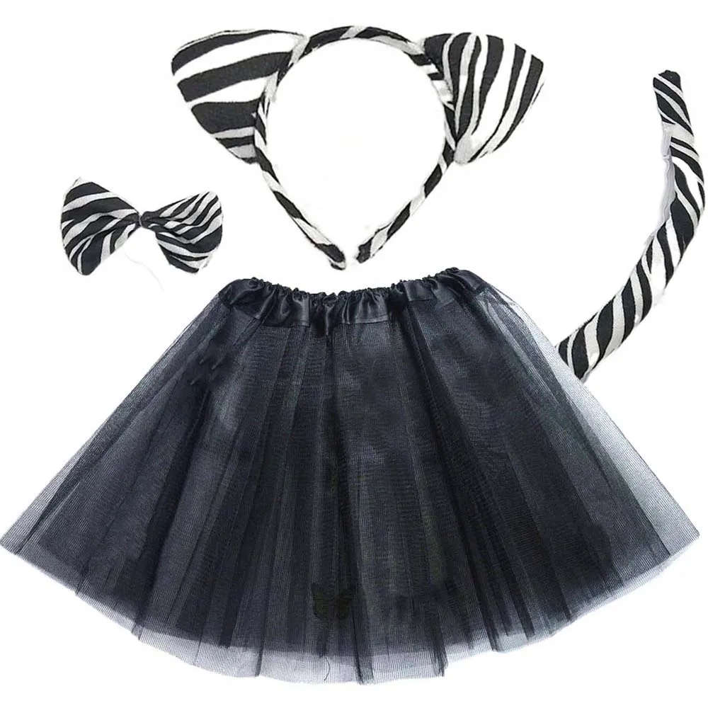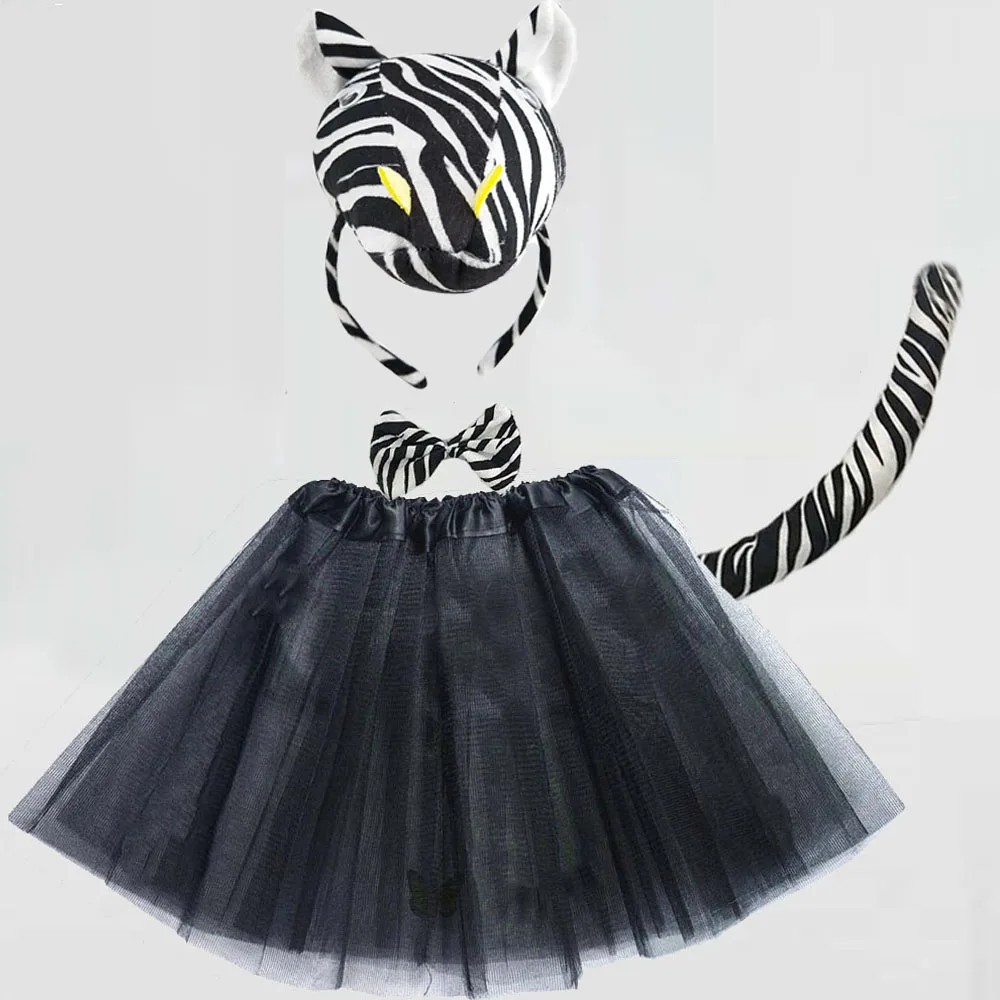 Детская повязка на голову в виде зебры, хвост, галстук, костюм, юбка, нарядное платье на день рождения, реквизит для малышей, косплей, Хэллоуин