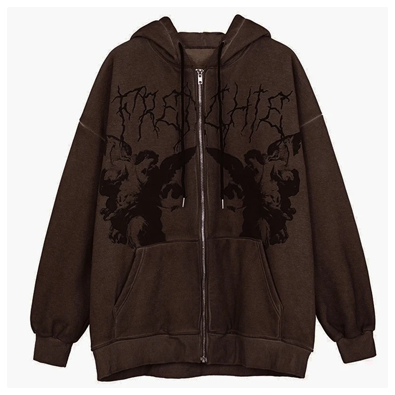 Толстовка МужскаяЖенская Y2K, с капюшоном на молнии, с принтом анге...