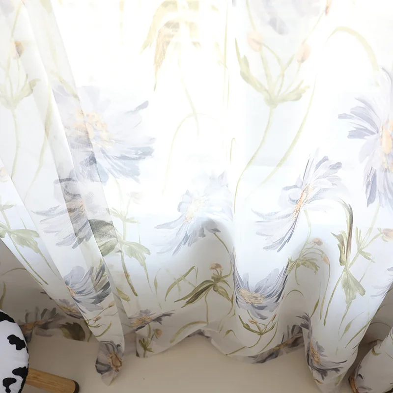 Тюлевые занавески в скандинавском стиле с маргаритками для гостиной...