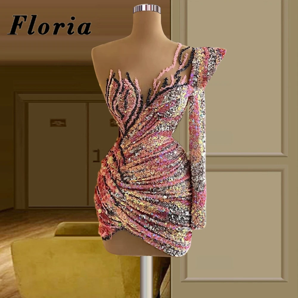 Женское коктейльное платье Floria, разноцветное короткое платье с блестками, индивидуальный пошив, арабское платье для выпускного вечера в стиле знаменитостей Дубая, 2021
