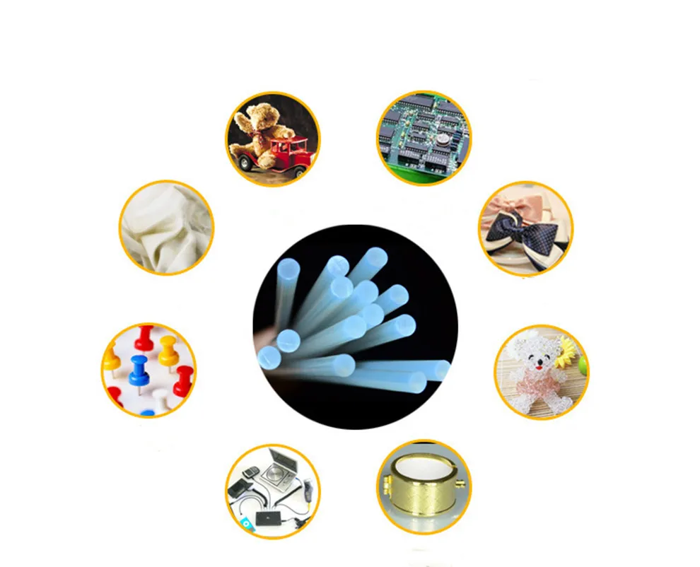 В комплект входит 5 посылка: 10 клеевых палочек (прозрачный)