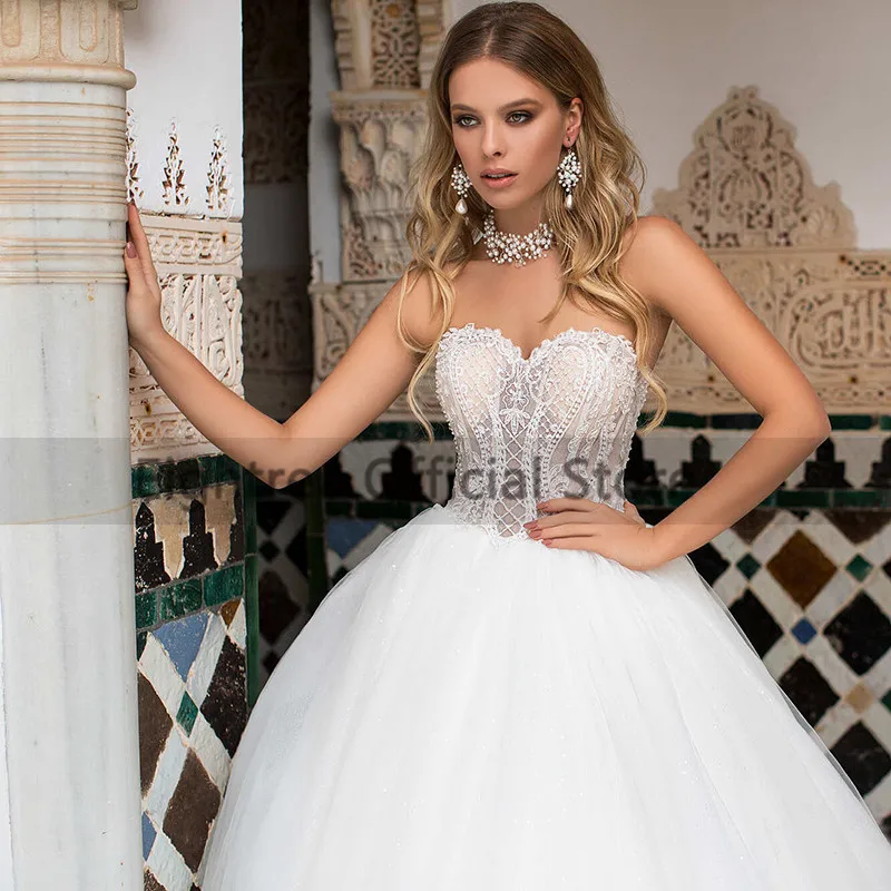 Великолепные кружевные свадебные платья принцессы с V-образным выре...